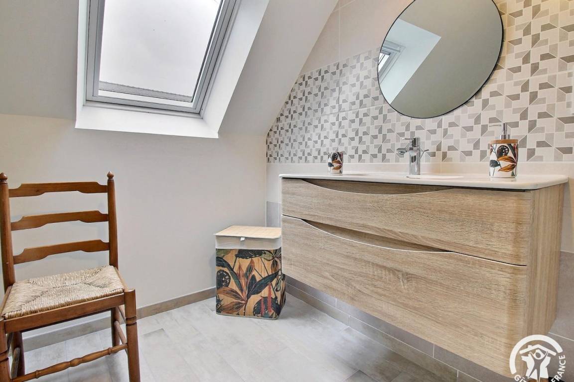 - Obergeschoss: 3 Schlafzimmer (1 160x200-Bett, 1 140x190-Bett und 2 90x190-Betten), ein Badezimmer und eine separate Toilette.