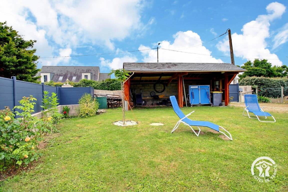 Draußen: ein umzäunter Raum von 320 m² mit Parkplätzen und Garten. Möglichkeit zur Unterbringung eines Bootes für ein 3,25 Meter breites Tor. Die Unterkunft liegt an der Departementsstraße (stark befahrene Straße), die Belz mit Plouhinec verbindet. Die Errichtung eines mit Photovoltaik-Paneelen bedeckten Carports. Der Einbau eines 1,80 m hohen Tors trägt dazu bei, den Straßenlärm zu dämmen.