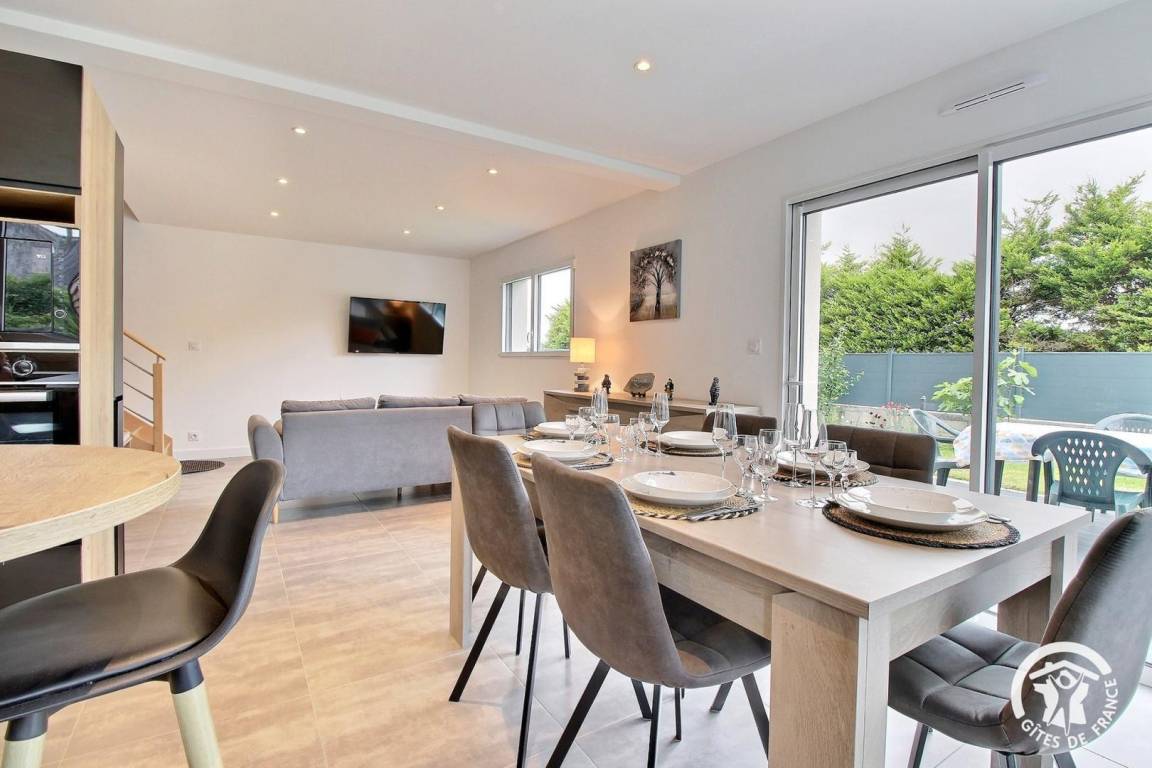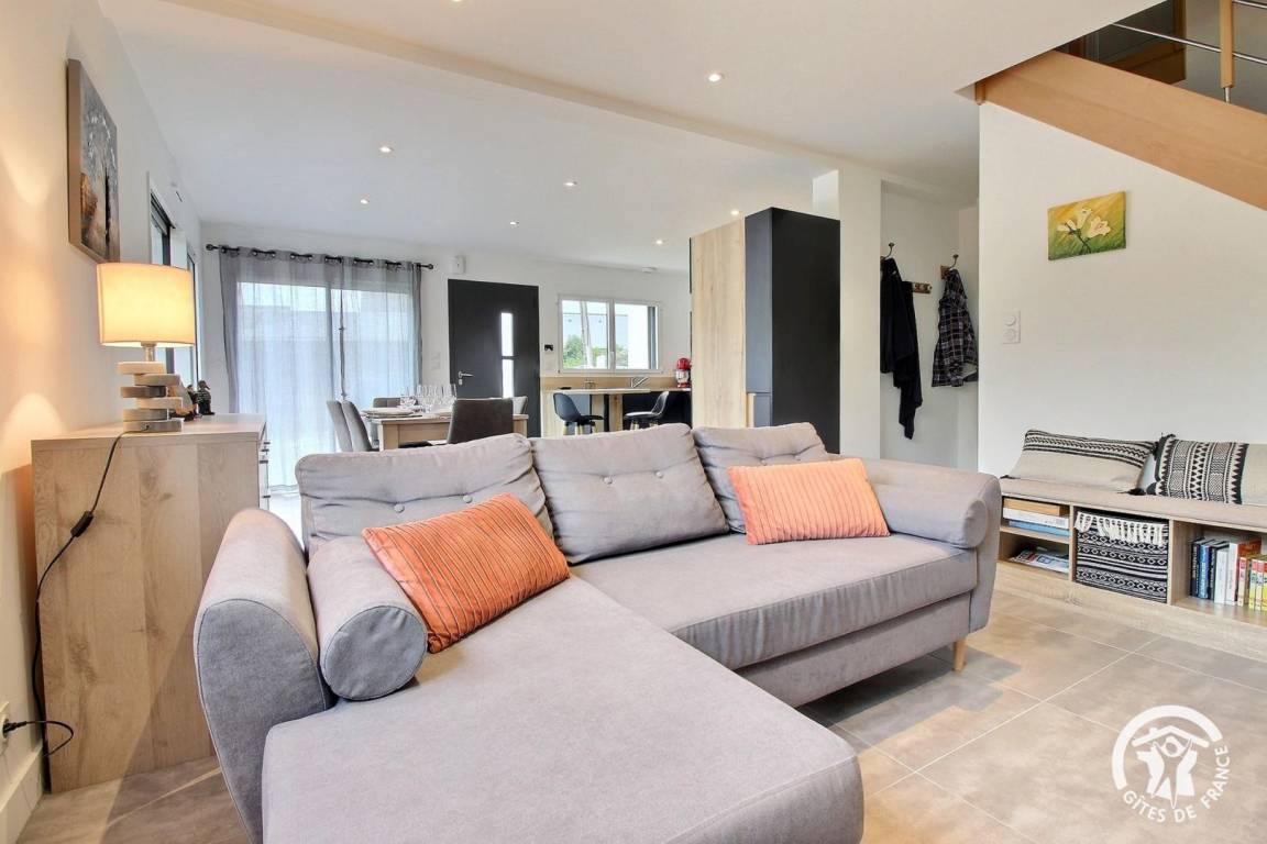 „Gîte très agréable, moderne, spacieux près des sentiers côtiers de la Ria. Une cour extérieure très bien sécurisée par un portail, car effectivement il y a la route départementale qui passe juste devant. Nous avons pu faire de belles balades à pieds et en vélo en partant du gîte jusqu'à Étel et aussi les plages de Magouera. Nous avons été ravis de notre séjour, les petits commerces sont accessibles à pieds depuis le gîte également.“