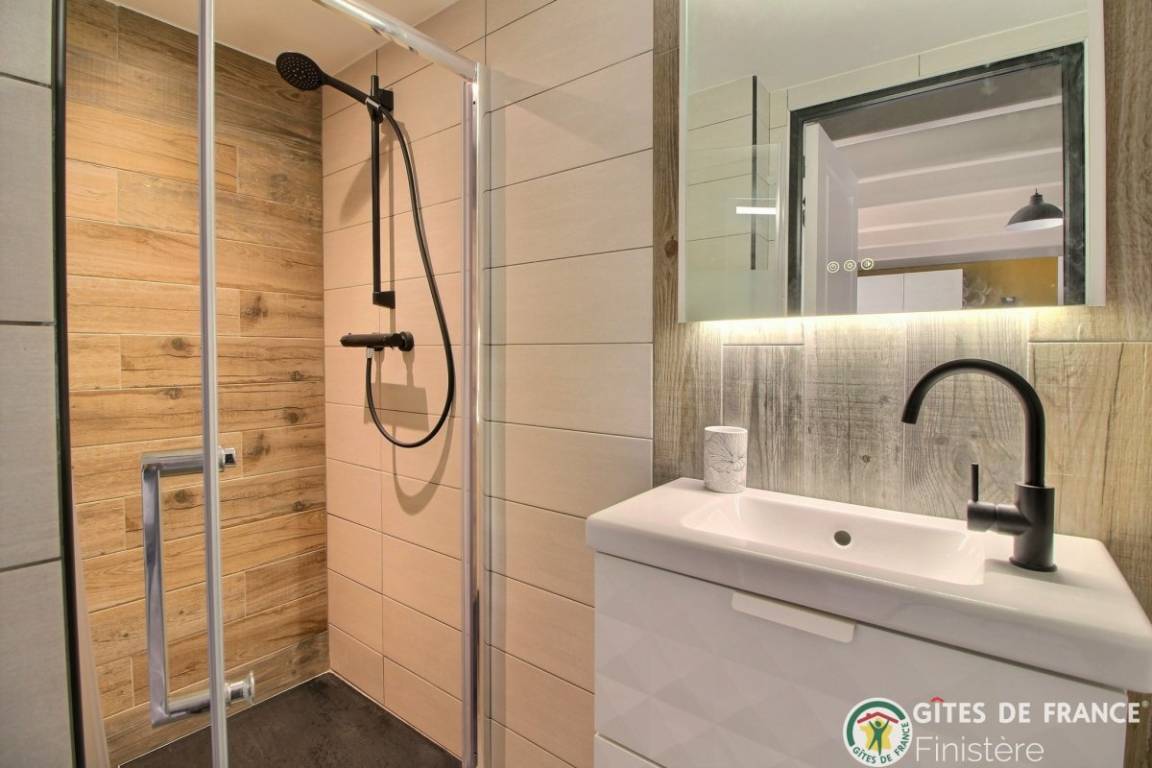 „Très beau gîte moderne et fonctionnel avec accès à un jardin et emplacement pour la voiture à l intérieur. L'environnement est proche de la nature, d une chapelle avec une belle architecture bretonne“