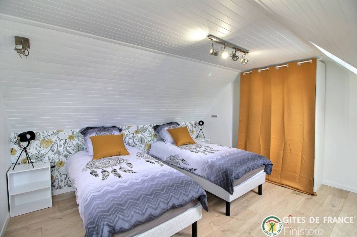 „Très beau gîte décoré avec goût, terrasse privative. Parking privé dans une grande cour fermée, proche des plages et randonnées. les propriétaires sont sympathiques et dispo. Petite attention à l'arrivée avec un far Breton et jus de pomme maison. Super séjour.“