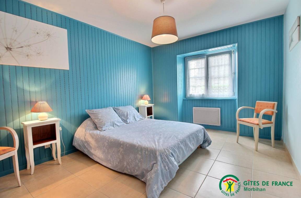 Gite adjoining another, 3 km from Plouhinec. Kitchen, sitting room, 1 bedroom (1 double bed, 1 child bed 4 to 10 yrs old, 1 baby cot), shower room, wc, electric heating. Private outdoor space with garden furniture, BBQ. Shared garden 300 m². In a countryside environment, between woodland and seaside for walking, fishing.