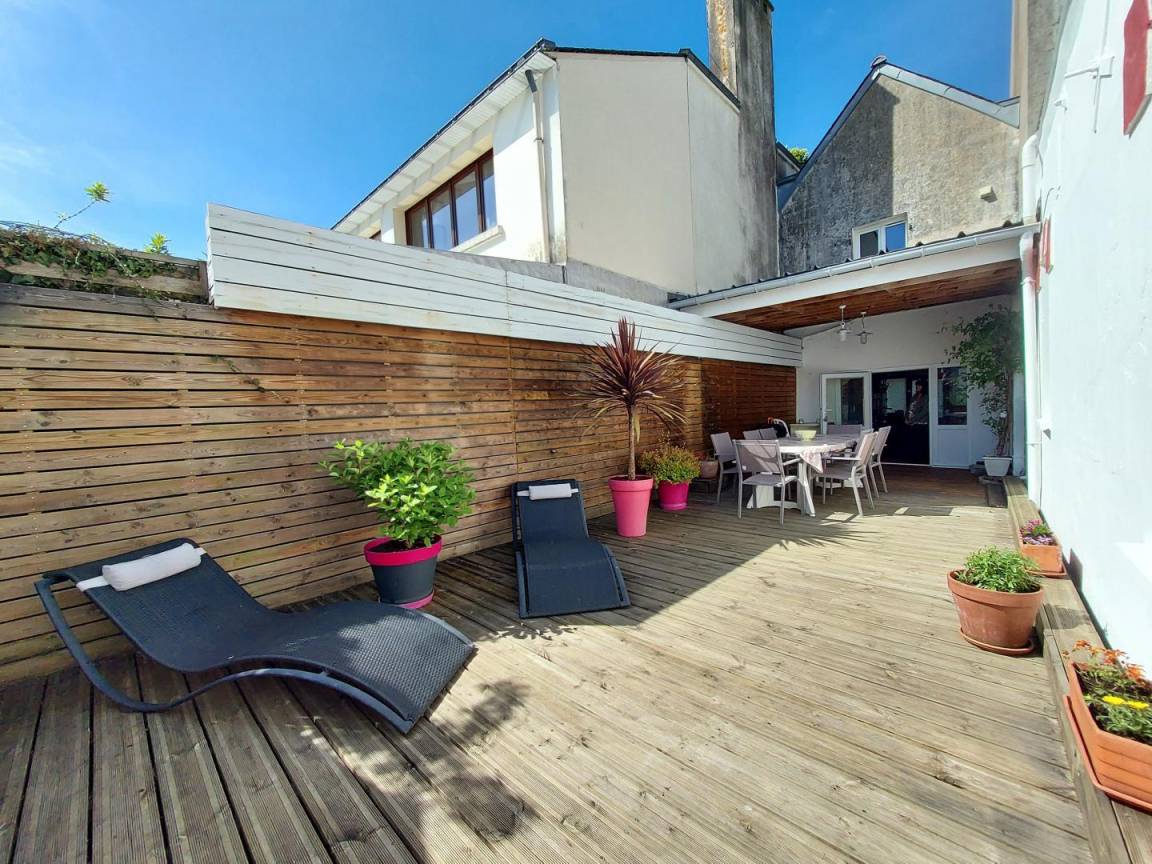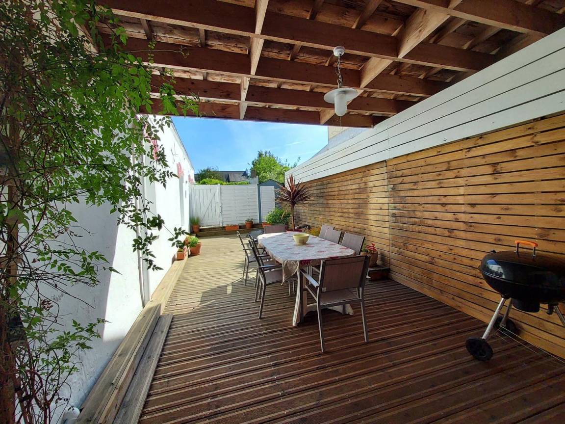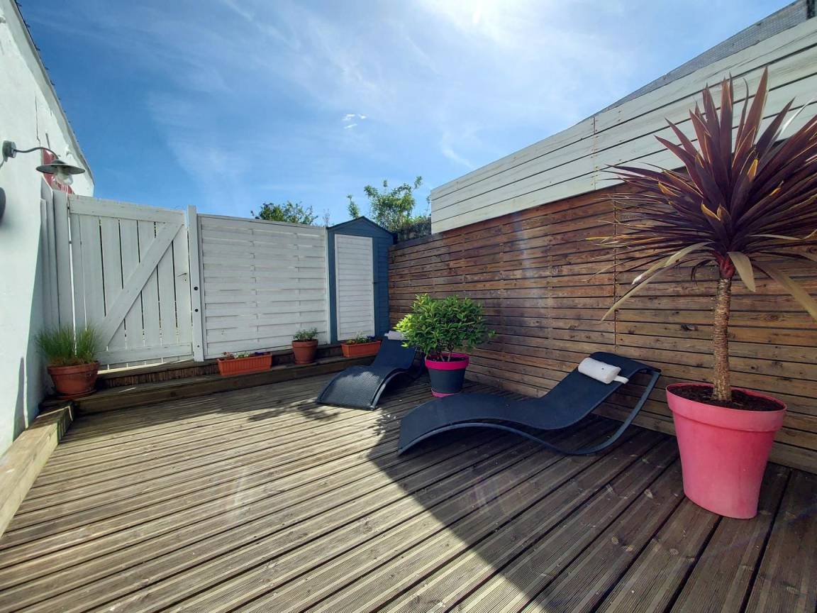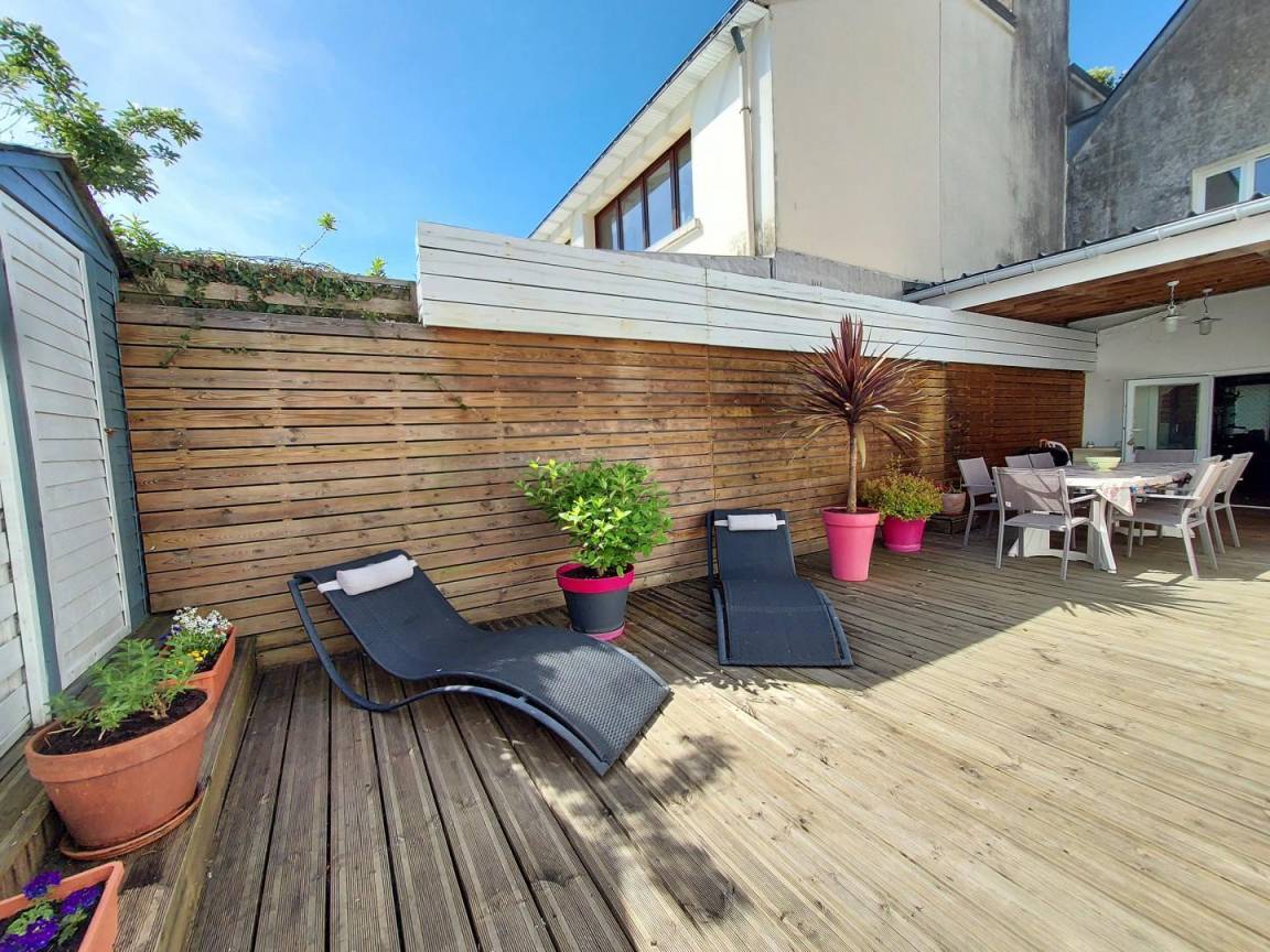 Der Zugang zur Terrasse erfolgt über die Garage der Eigentümer, die im Miteigentum wohnen. Die Eigentümer erreichen ihr Haus über die Garage und dann über die Terrasse des Ferienhauses. Parkplätze auf der Straße und Parkplatz in 30 m Entfernung (beides kostenlos). Außer an Feiertagen wird das Ferienhaus als Gästehaus angeboten (56G56506).