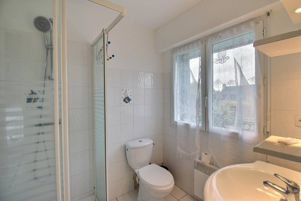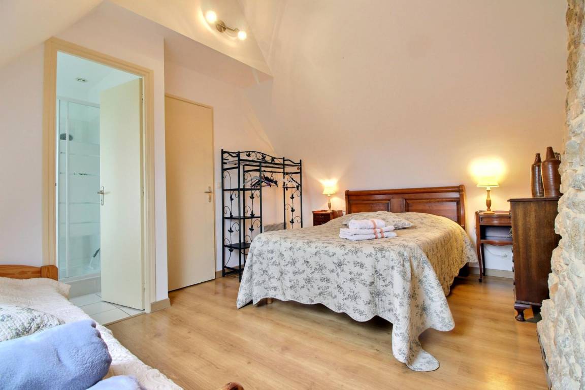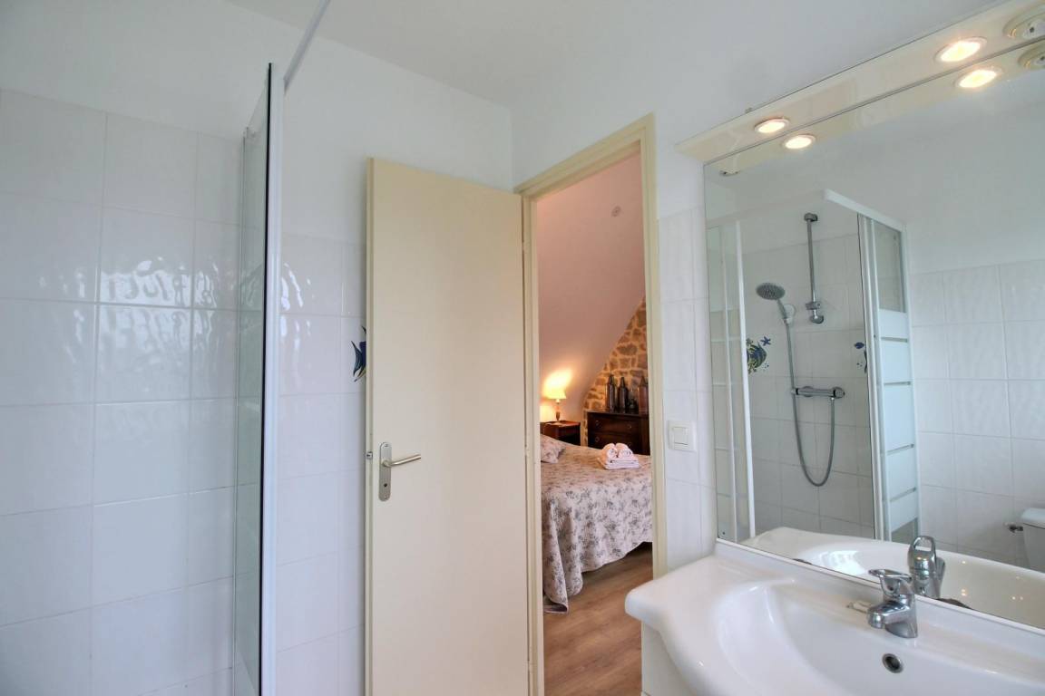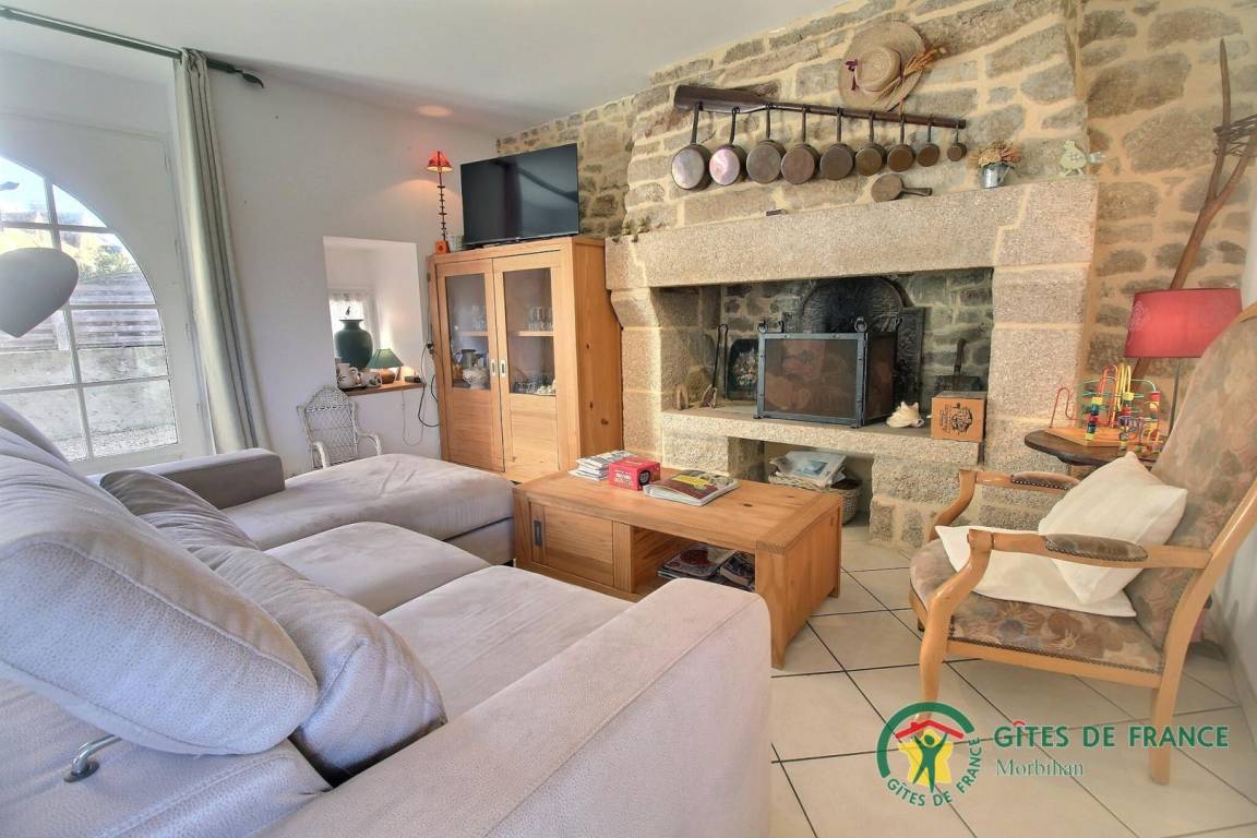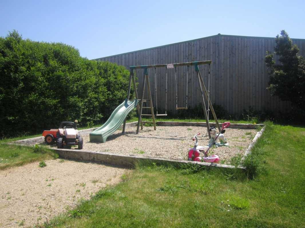 Detached gite near 2 others gites on a farm (growing vegetables), in village 3 km from Plouhinec. Living room/kitchen corner/sitting area (TV with local digital channels, DVD player), 2 bedrooms (2 double beds, 1 child bed), 2 showers/wc, wc, electric heating. Garden 200 m², terrace, garden furniture, BBQ, sun beds. Shared : playground with swings, tennis table and boules alley. Wireless internet access at a fixed weekly rate of 10 €.