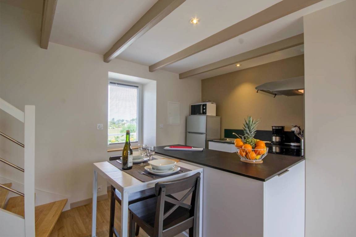 Verbringen Sie einen herrlichen Urlaub in Plouhinec. Im ehemaligen Semaphor wurden 4 Wohnungen gleich bei dem kleinen Hafen Magouër an der Ria d'Etel eingerichtet. Lernen Sie den Zauber der Süd-Bretagne in dieser natürlichen Umgebung kennen. Große Strände mit dem Gütesiegel Blaue Flagge, lange naturgeschützte Dünenkette. In der Nachbarschaft der Wohnung befindet sich ein Kinderspielplatz mit Schaukel und Rutschbahn gleich bei einem kleinen Familienstrand der Ria. Alle Geschäfte in der Nähe. Hafen Magouër 100m, frisches Brot, Bars, Restaurant, Kajakvermietung, Paddles, Fährboot nach Etel. Die Wohnung HOEDIC für 2 Personen befindet sich im 1. Stock: auf dieser Ebene ein Wohnbereich mit voll ausgestatteter Küche, Esszimmer, Wohnzimmer, Bad mit Dusche/WC. Im oberen Stockwerk 1 wunderschöne Schlafzimmer mit Bett 160x200. Im Freien: eigene Terrasse mit Gartenmöbeln. Gemeinsamer Privatparkplatz. Nebenkosten inklusive.