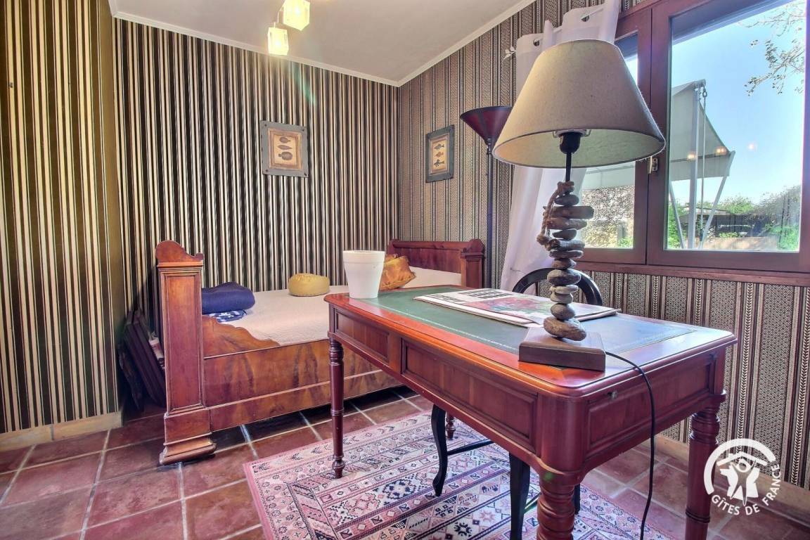 - Schlafzimmer mit 120 x 190 Bett und Schreibtisch