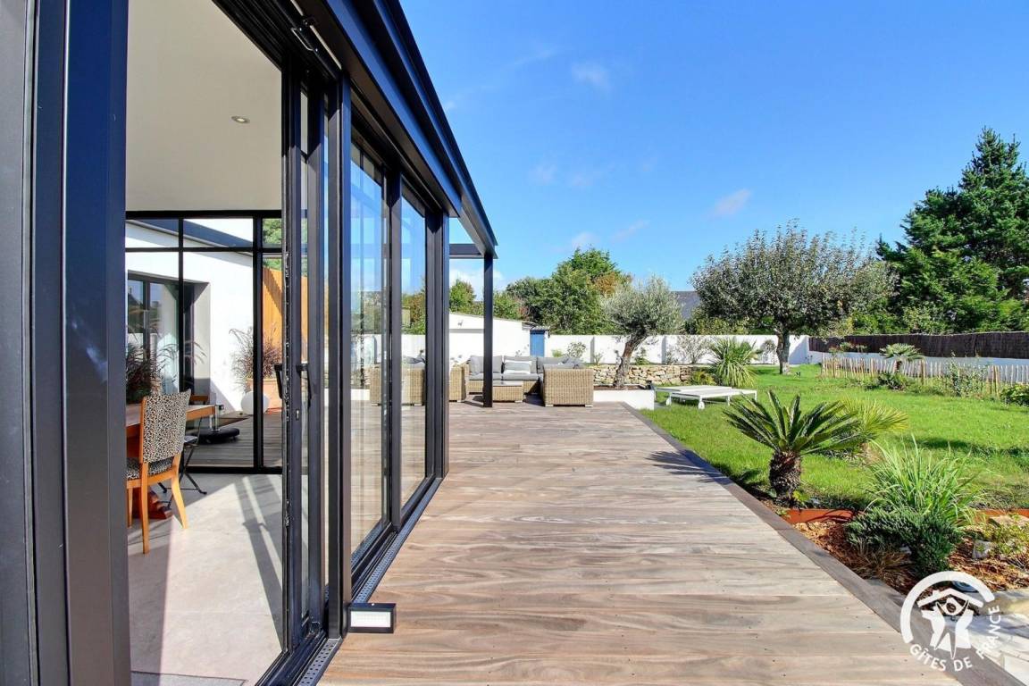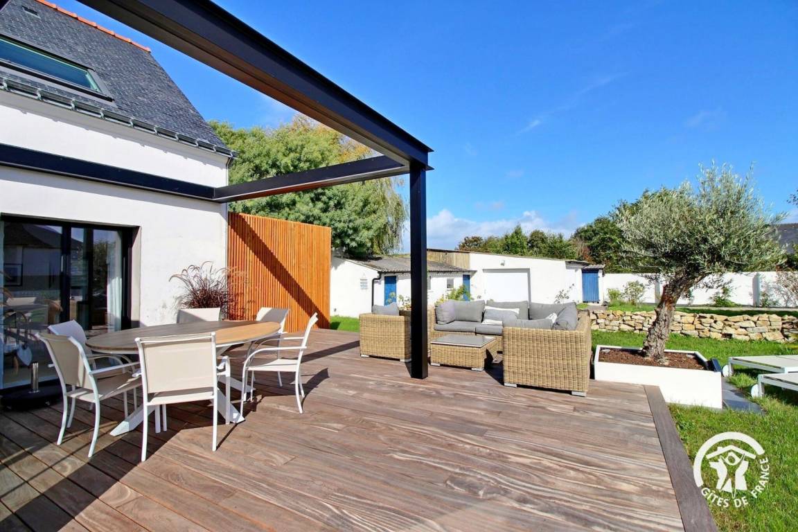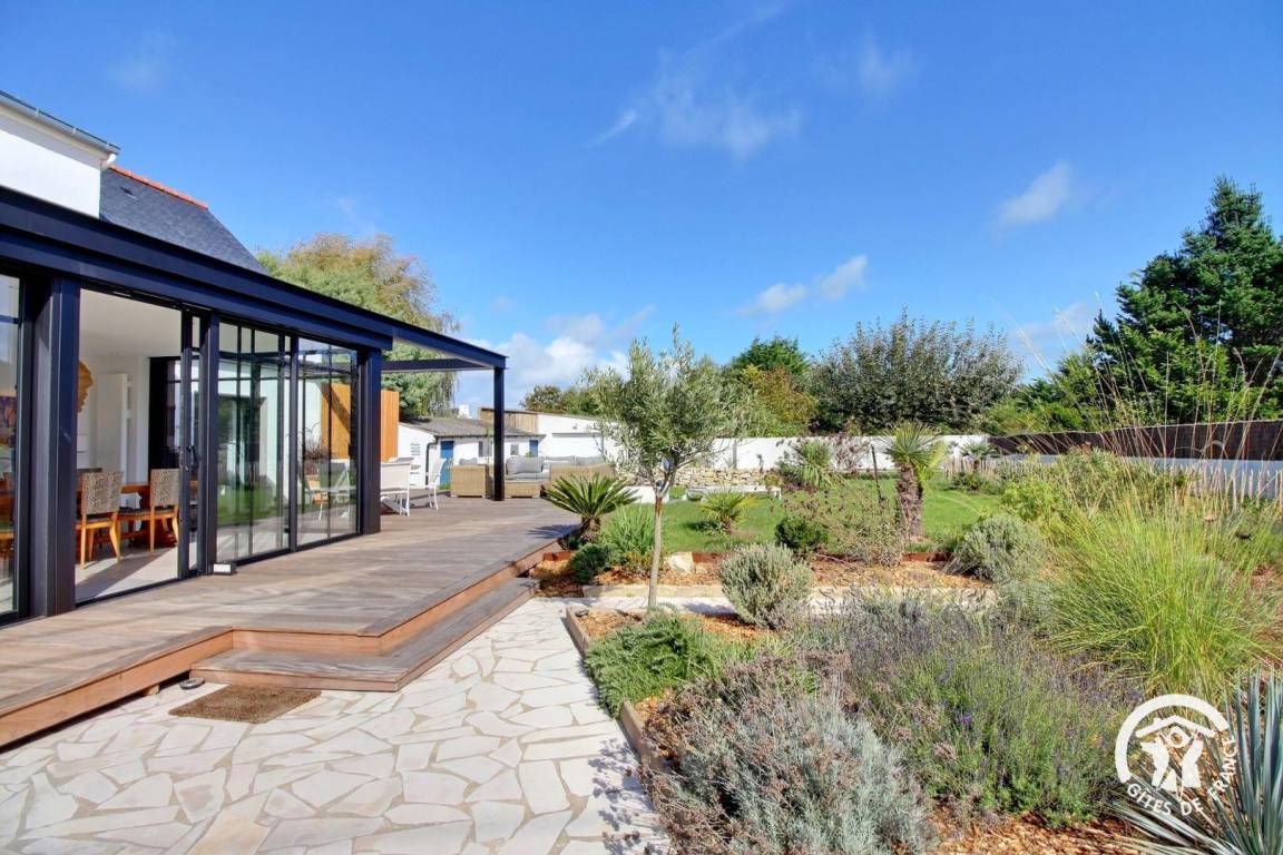 Draußen erwartet Sie ein gepflegter, angelegter Garten, der zum Entspannen einlädt. Hier können Sie nach einem Spaziergang entlang der Ria oder einer Erkundungstour zu den Schätzen des südlichen Morbihan entspannen.