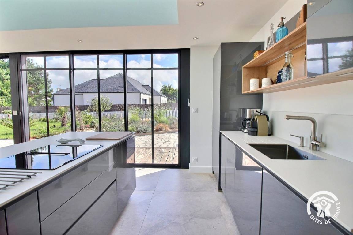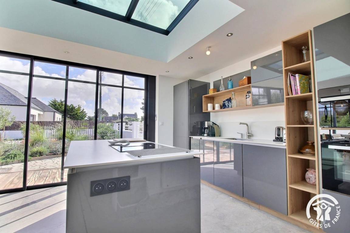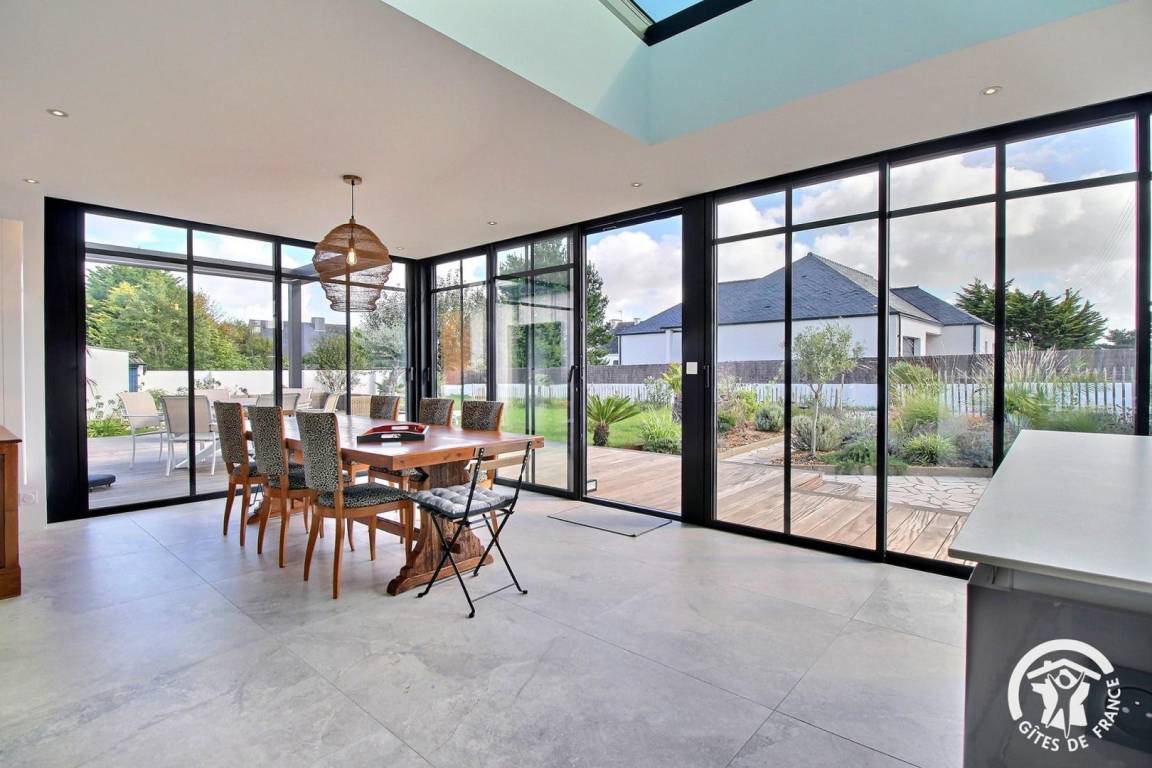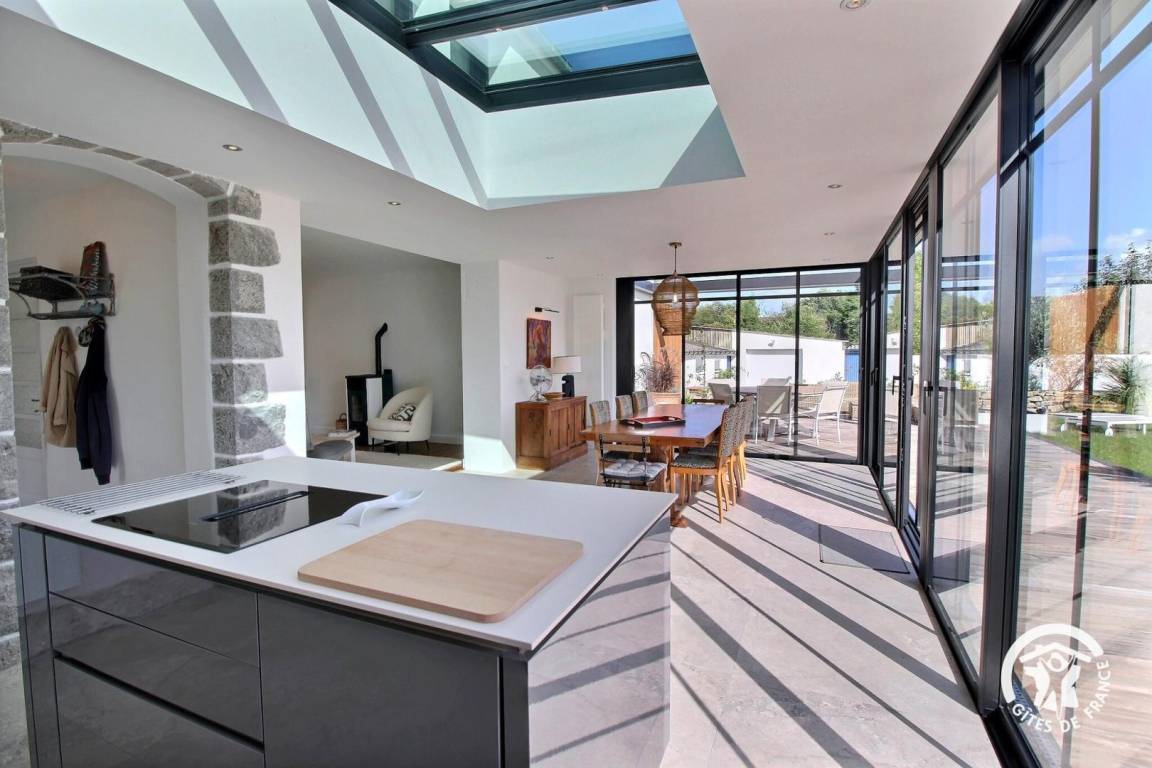 – Küche mit offenem Essbereich in einem großen, hellen Anbau mit direktem Zugang nach draußen
