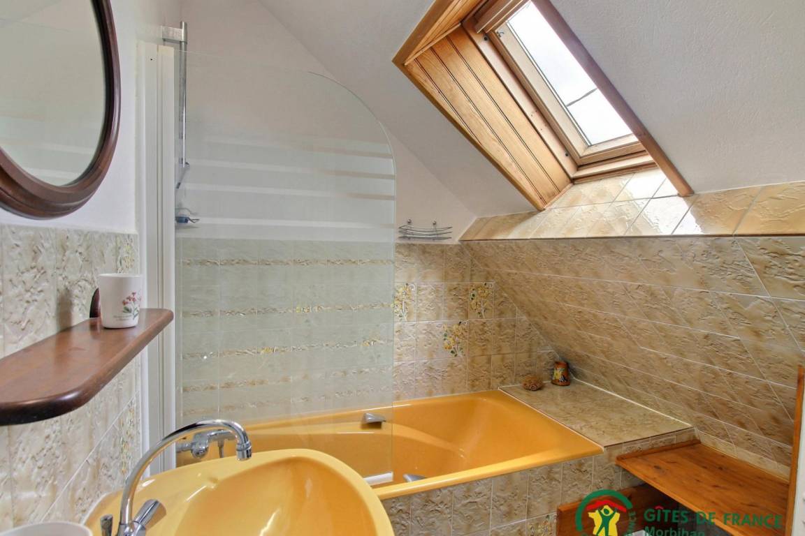 - Eine erste Treppe führt zu: 2 Schlafzimmern (1 Bett 140x190 und 2 Betten 90x190) und einem Badezimmer mit WC.