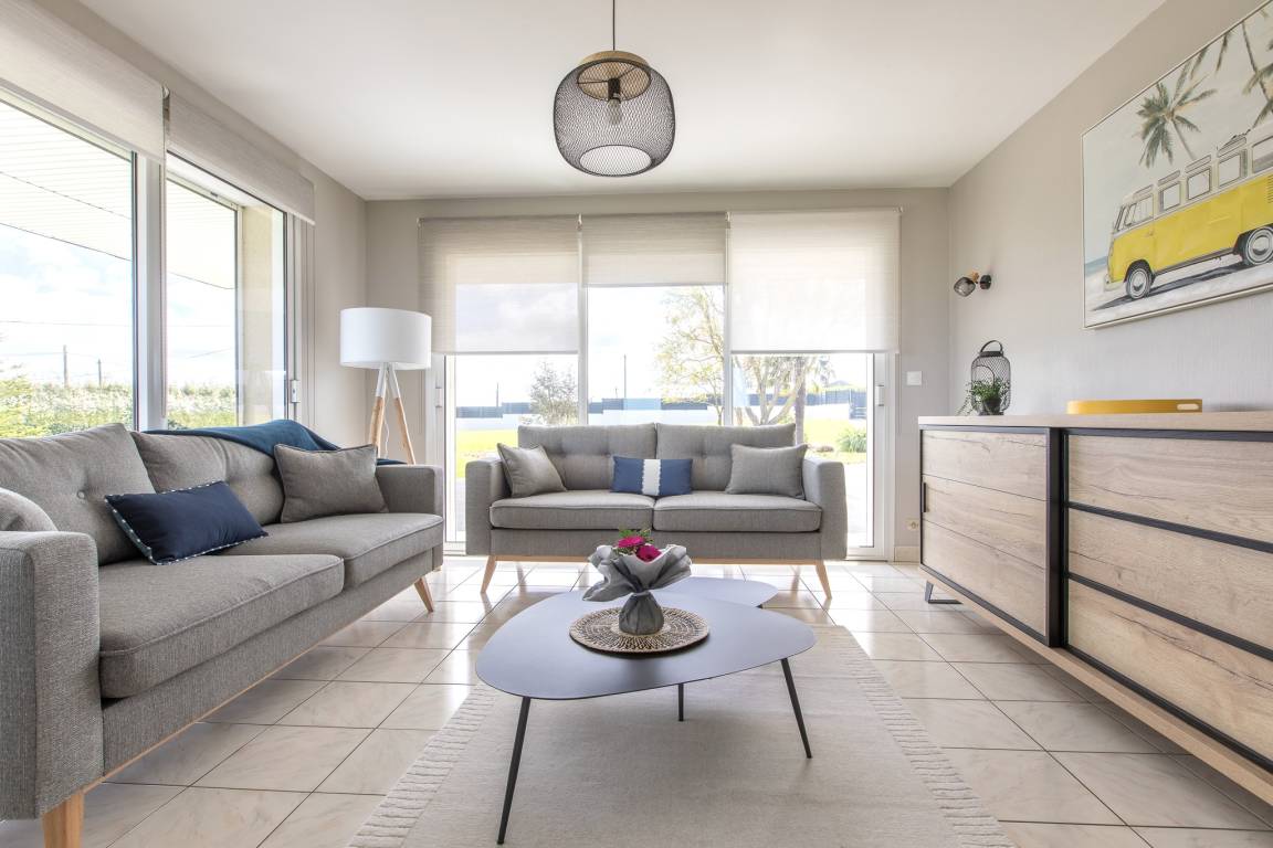 „Nous avons passé un très bon séjour dans cette agréable maison avec une vue magnifique sur la mer avec ses changements de couleurs au gré du temps et des marées. la maison est spacieuse et pratique avec une excellente literie. Les activités pétanque, baby-foot et ping-pong ont été très appréciées. L'emplacement est parfait pour rayonner dans la région avec des commerces et des marchés à proximité. L'accueil et le relationnel avec Charline ont été parfaits.“