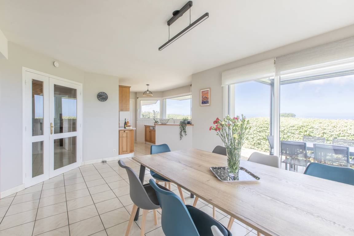 „Gîte avec vue exceptionnelle sur la mer !Grâce aux très grandes baies vitrées, nous avons pu profiter de cette vue à chaque instant. Accueil au top par Charline et Sébastien les propriétaires !Maison fonctionnelle et très propre ! Super pour les petits produits qui sont dans la maison et qu'on oublie toujours (sel, sucre, éponge, torchon, sopalin...).Petit point à améliorer: La salle de bain du bas un peu petite. Mais sinon, le reste est parfait ! Notamment, génial le terrain de pétanque, la table de ping pong et le baby foot, sans oublier les jeux de société !“