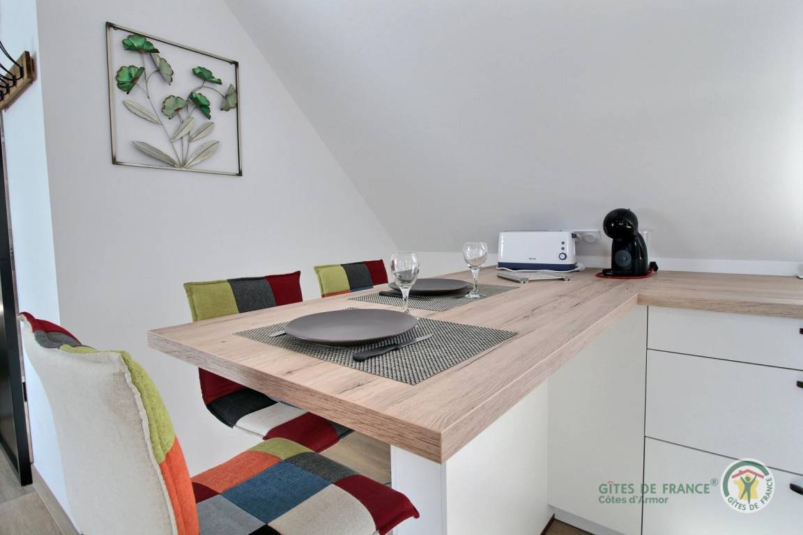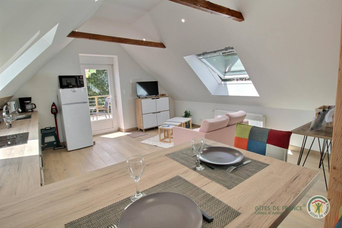 Ihr im Obergeschoss gelegenes Ferienstudio umfasst: einen Raum bestehend aus: Küche mit Essbereich, Wohnzimmer und Schlafbereich (1 Doppelbett 140x190). Badezimmer mit Dusche und WC. Zu Ihrer Verfügung: private Terrasse von 14 m² mit Plancha. Doppelhaushälfte bei den Eigentümern, in der Nähe von Ferienhaus 22G210602.