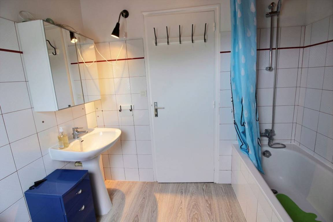 Ihre Ferienwohnung umfasst im Erdgeschoss: Wohnzimmer mit Sitzecke, 1 Schlafzimmer (1 Doppelbett 140x190, 1 Einzelbett 90x190), 2 Stufen führen zur Küche, das Badezimmer mit Dusche und die Toilette.