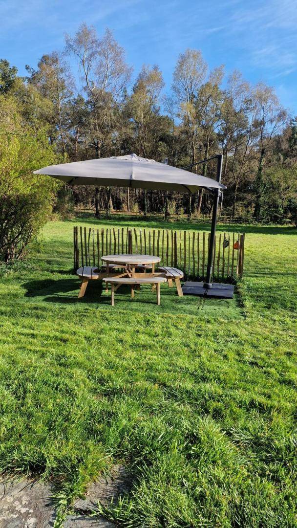 Terrassenbereich im nach Süden ausgerichteten Garten mit Gartenmöbeln, Sonnenliegen, die Sie nach Ihren Wünschen im 800 m² großen Garten auf 1 Hektar Land verschieben können, ein privater Innenhof von 100 m²,