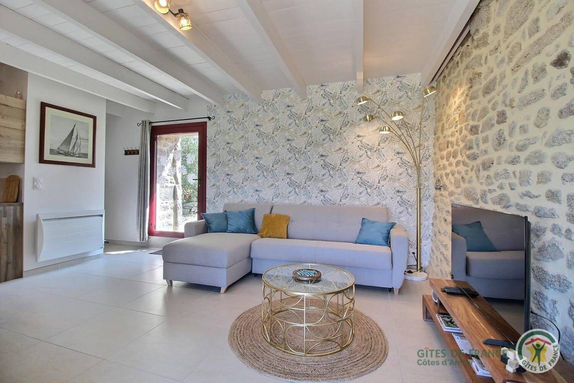 Ihre Ferienwohnung umfasst im Erdgeschoss: Wohnzimmer mit gut ausgestatteter Einbauküche, 1 separates WC mit Waschbecken. Obergeschoss: 1 großes Schlafzimmer im Dachgeschoss mit Klimaanlage (1 160x200-Bett), Badezimmer (Dusche). Geschotterter Innenhof von 100 m², umgewandelt in eine Terrasse mit Gartenmöbeln, Ruhelounge und Sonnenliegen. Bowlinggrün und großes Feld. Möglichkeit zum Mieten von Fahrrädern: Erkundigen Sie sich bei den Eigentümern, die vor Ort wohnen.