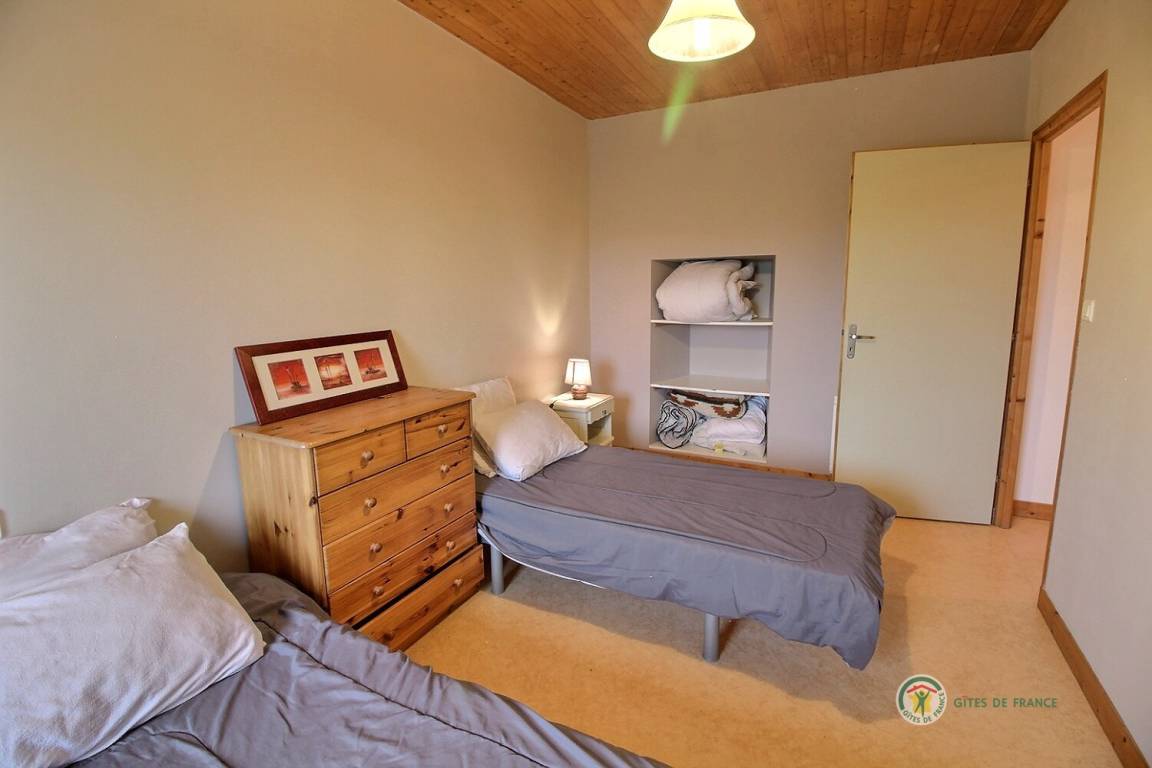 Ihre Ferienwohnung umfasst im Erdgeschoss: großes Wohnzimmer mit Kamin, Einbauküchenbereich, Bad mit Dusche und WC. Obergeschoss: 3 Schlafzimmer (2 Doppelbetten, darunter 1 von 1,60 m, 2 Einzelbetten von 0,90). Badezimmer mit Badewanne und WC. Gericht und Privatgrundstück von 430 m². Terrasse. 2 Mountainbikes vorhanden. Offene Garage für Autos.