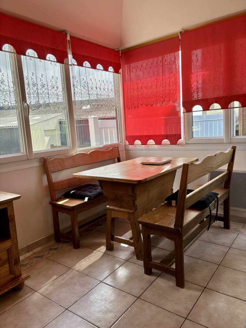 „Le gîte suffit largement à un couple; il est tranquille et équipé convenablement; le propriétaire est sympa et aime bien échanger avec ses hôtes. Deux "bémols" cependant:- la table est certes originale mais cette particularité lui confère un inconvénient: Il est quasi impossible de caser ses jambes, les genoux sont empêchés de se glisser dessous, d'autant plus que les sièges sont constitués d'un banc non déplaçable. - la salle d'eau - WC est exigüe: Personnes corpulentes s'abstenir!“