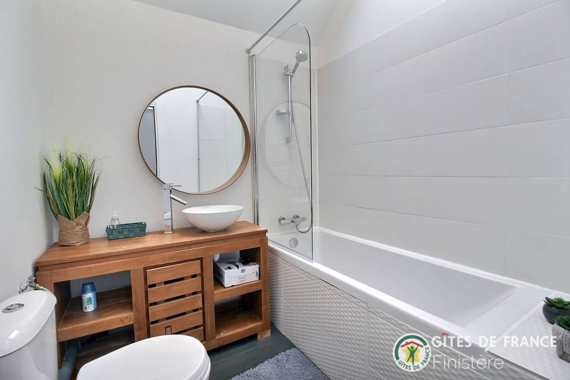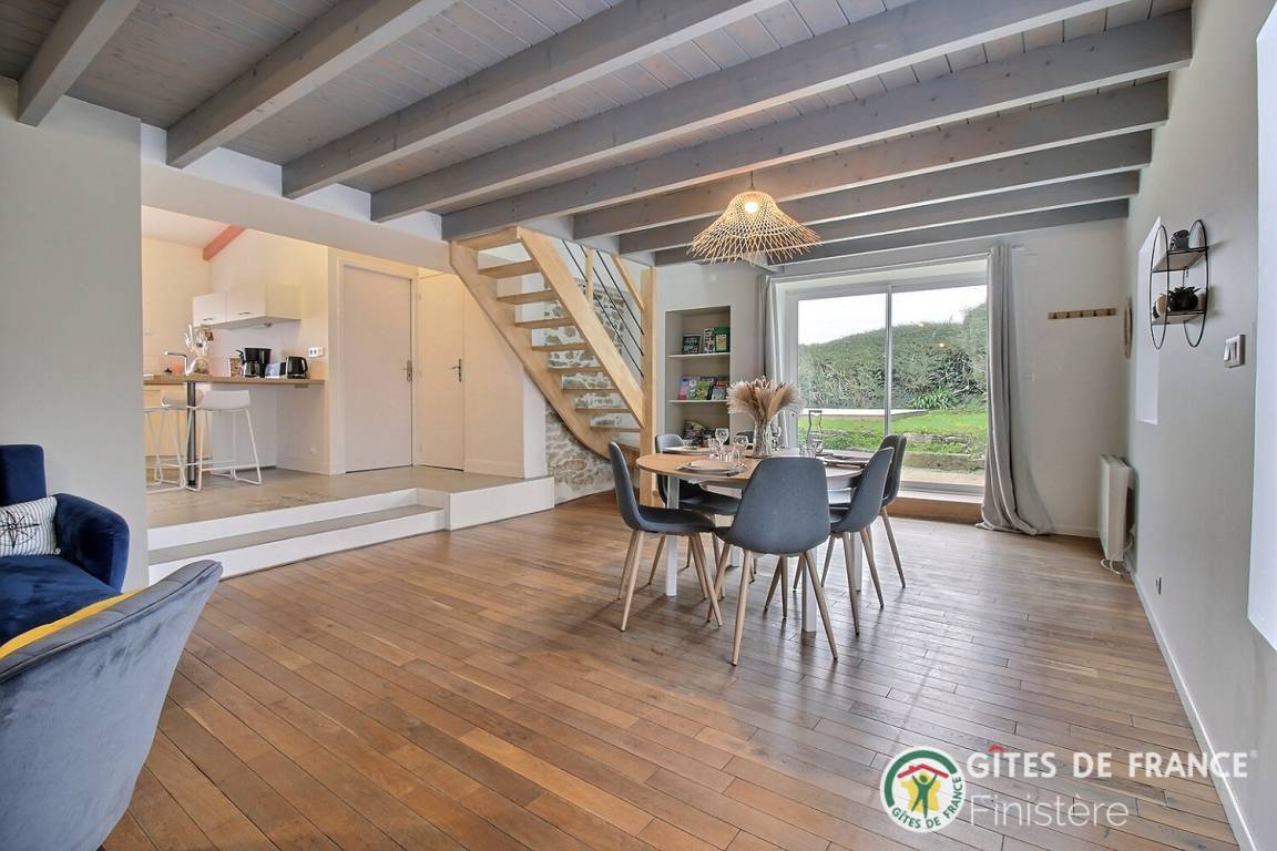 „Jolie location récente, indépendante, au décor moderne et accueillant. Elle est située au cœur d'un joli bourg avec quelques commerces, la mer est accessible à 500M. Les propriétaires sont charmants. Notre seul regret concerne la literie, nous avons eu mal aux lombaires du fait des matelas récents mais de piètre qualité. C'est dommage et nous ne le conseillons pas aux dos sensibles.“