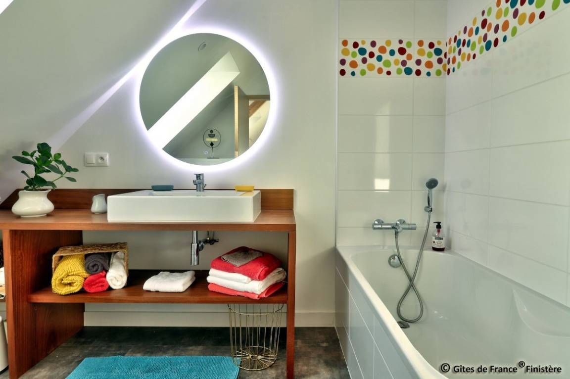 „Accueil très sympathique. On sent tout de suite que la propriétaire aime faire profiter de son gîte aménagé avec un goût sans faute. On s y sent bien et la bibliothèque (quasi exclusivement sur la Bretagne) est impressionnante avec des livres très pointus mais pas que ! Emplacement idéal pour découvrir cette partie très sauvage de la Bretagne Aucune hésitation à choisir ce gîte !“
