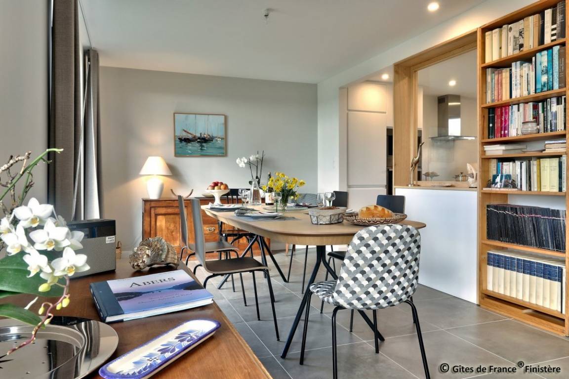 „Très beau gîte confortable, spacieux, lumineux et très fonctionnel sans oublier les bibliothèques qui ont plu à toute la famille. Idéalement situé dans un quartier calme, proche des sentiers et de la mer. Accueil très chaleureux, propriétaire plein de gentilles attentions. Nous recommandons vivement.“