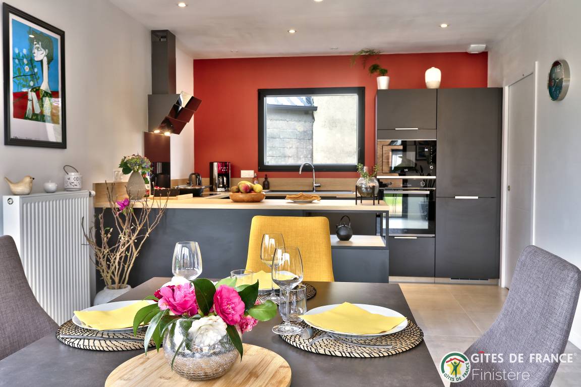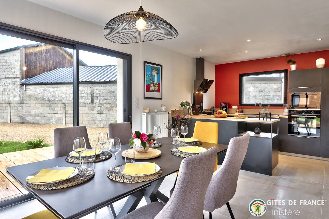 „We stayed here for 4 nights in July. This is a very peaceful and scenic part of Brittany with fantastic beaches. We were made to feel very welcome upon arrival and the Gîte has everything you need for a very comfortable stay and is furnished to a very high and tasteful standard. My children really enjoyed the space and even played some of the French board games that were made available. There is a small supermarket just down the road and the village with very nice restaurant, pizzeria and pub within easy walking distance.“