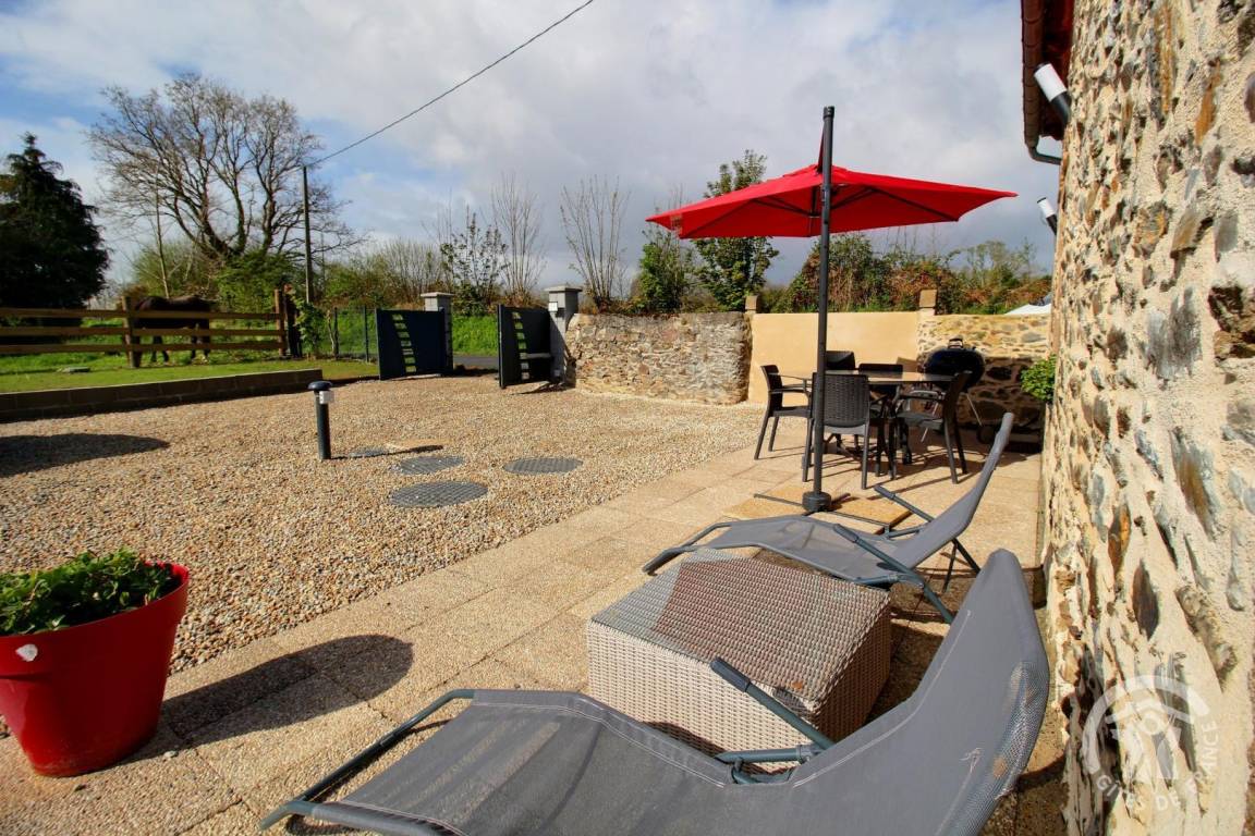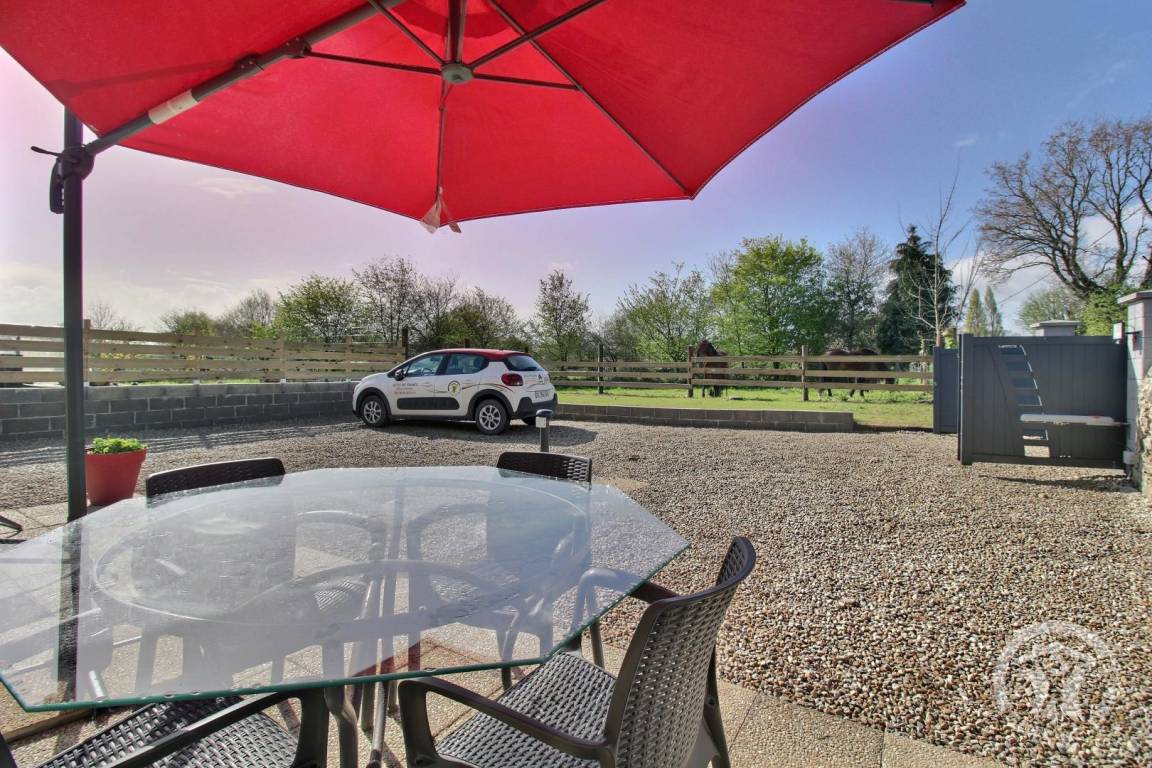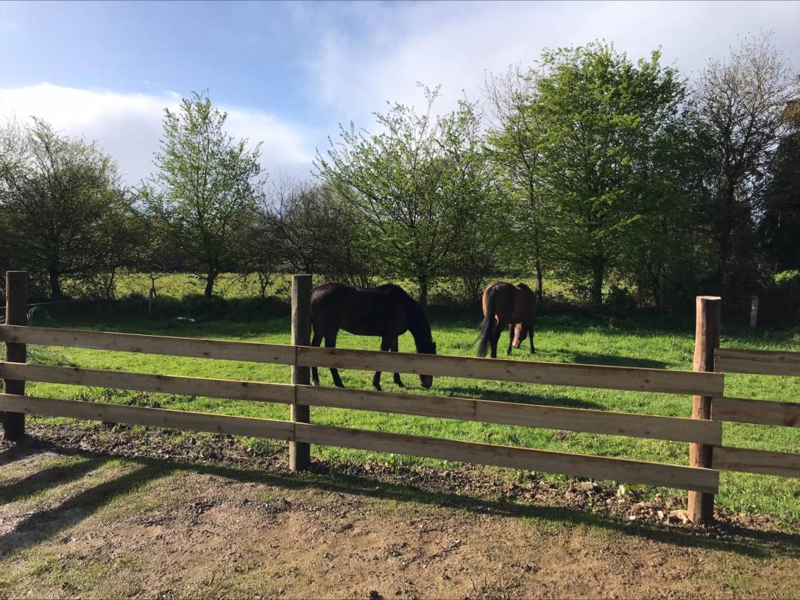 Draußen ist die Terrasse der ideale Ort zum Entspannen, von wo aus Sie einen schönen Blick auf die Pferde der Besitzer genießen können.