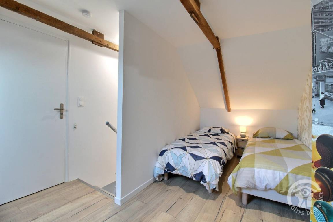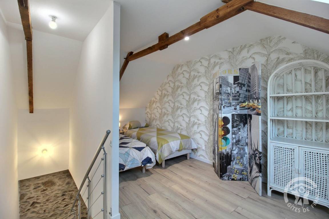 - Obergeschoss: ein Schlafzimmer (nicht geschlossen) auf dem Flur mit zwei 90x200-Betten, die zu einem 180x200-Bett kombiniert werden können, ein Schlafzimmer mit 1 140x190-Bett.