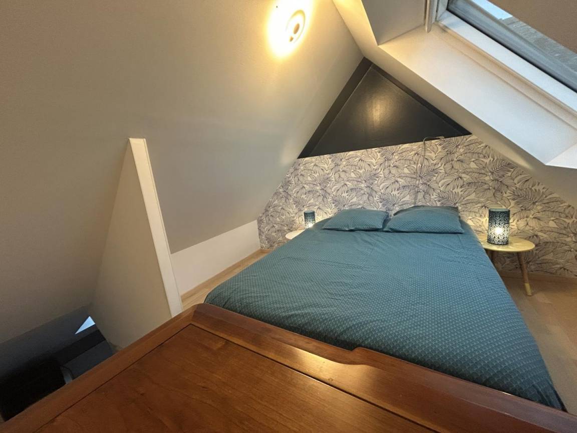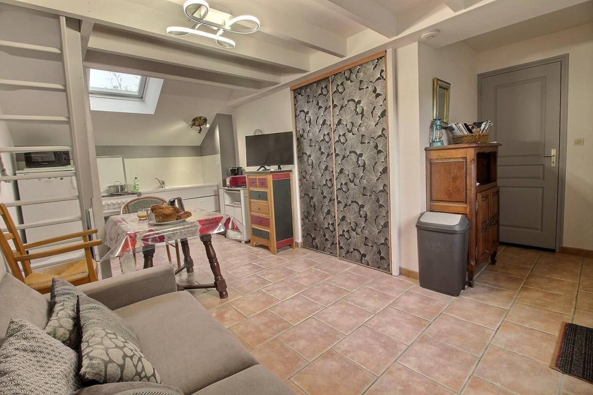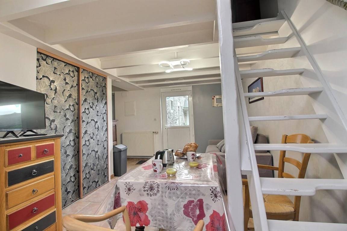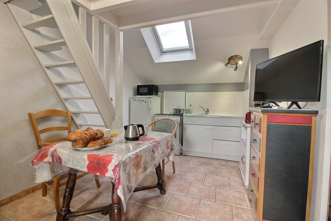 Ihre Ferienwohnung umfasst einen Wohnraum (Rapido-Schlafsofa) mit Küchenbereich, ein Badezimmer mit Dusche und WC. Obergeschoss: 1 Schlafzimmer im Zwischengeschoss mit einem 140x190-Bett und einer Treppe im japanischen Stil. Private 12 m² große Blumenterrasse. Hof und bewaldeter Park werden mit den anderen 6 Ferienhäusern des Anwesens Beauregard gemeinsam genutzt. Waschmaschine und Trockner werden gemeinsam mit dem Eigentümer genutzt. Komplette Babyausstattung auf Anfrage. Großer gemeinsamer und geschlossener Parkplatz für alle Ferienhäuser auf dem Gelände.