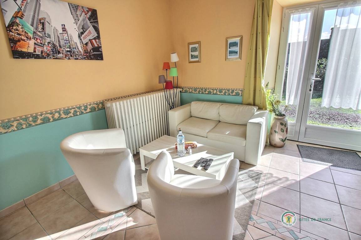 Ihre Ferienwohnung umfasst im Erdgeschoss: Wohnzimmer mit Einbauküche von 28 m² (Filterkaffeemaschine und Pads), 2 Schlafzimmer, eines mit 1 160x200-Memory-Bett und das andere mit 2 90x190-Betten, Badezimmer mit Wasser (Dusche) und separates WC . 2 private Terrassen und Grundstück von 200 m², großes Grundstück von 8000 m² mit Portikus. Tischtennisplatte (mit Schlägern).