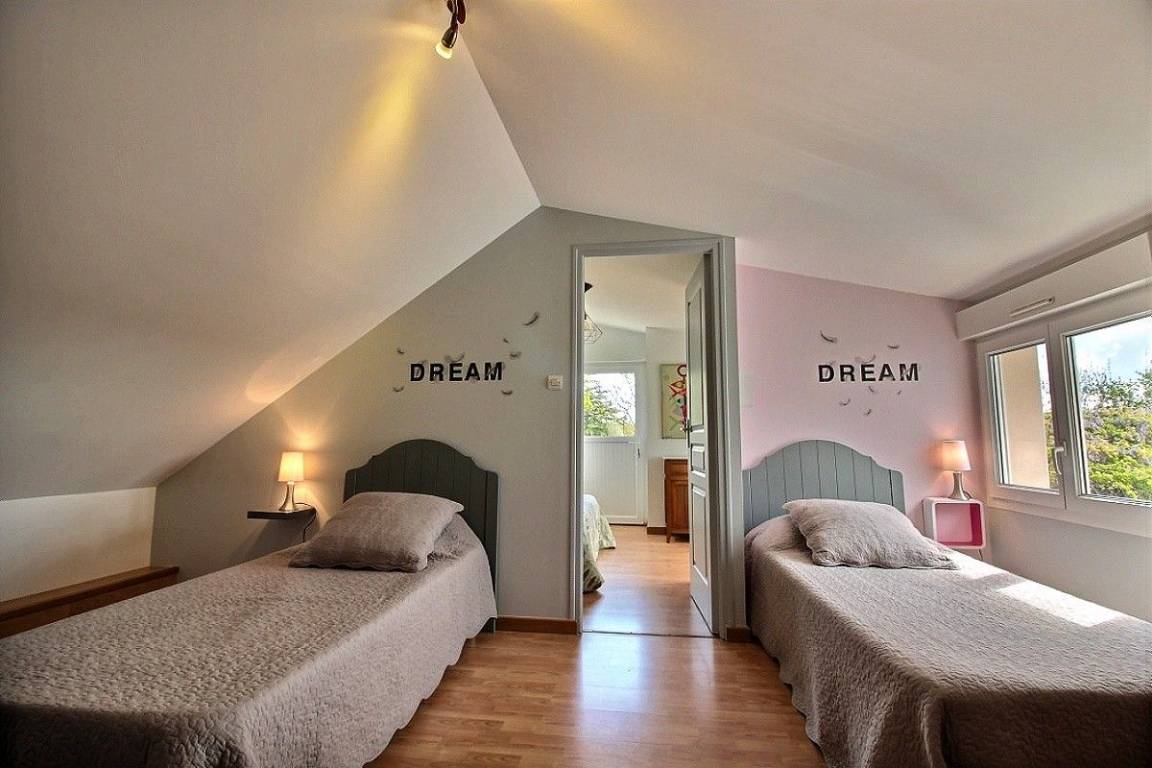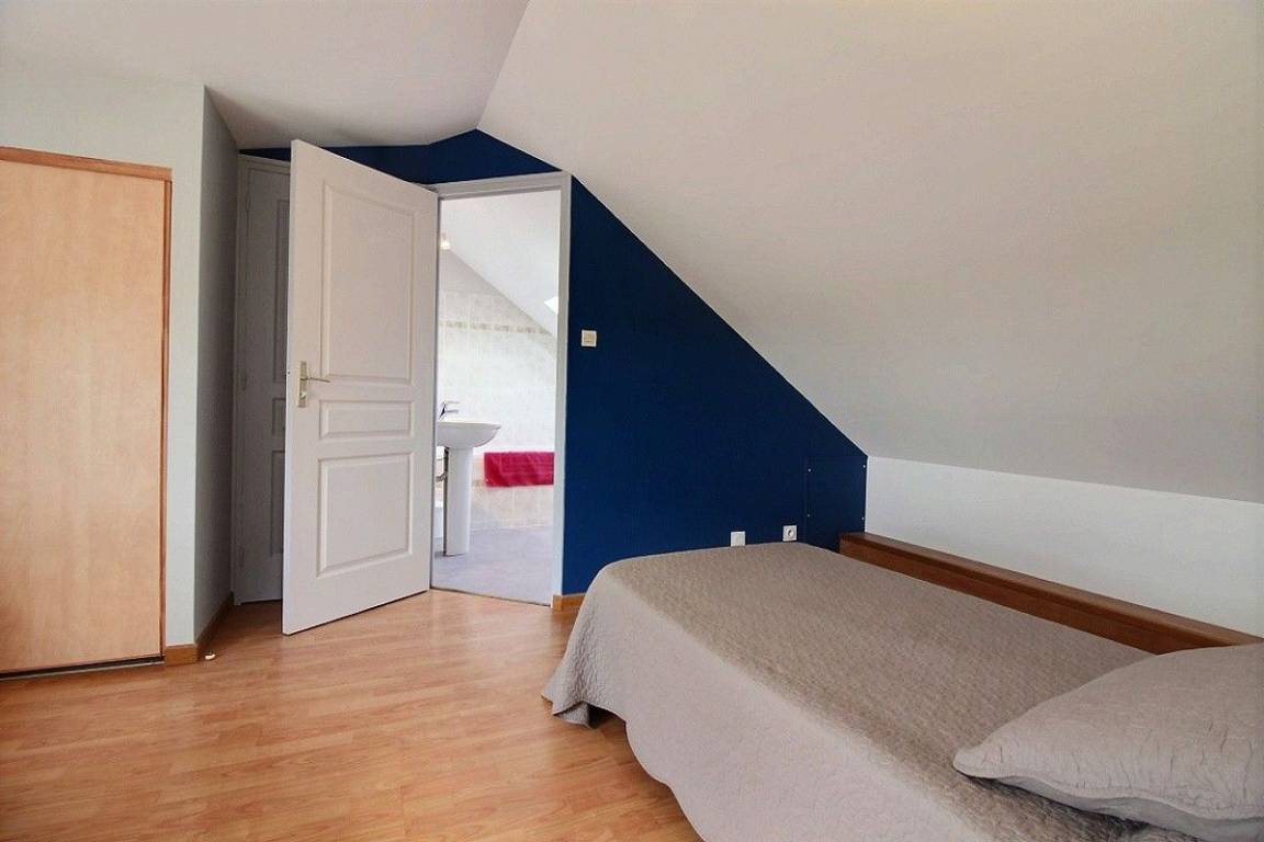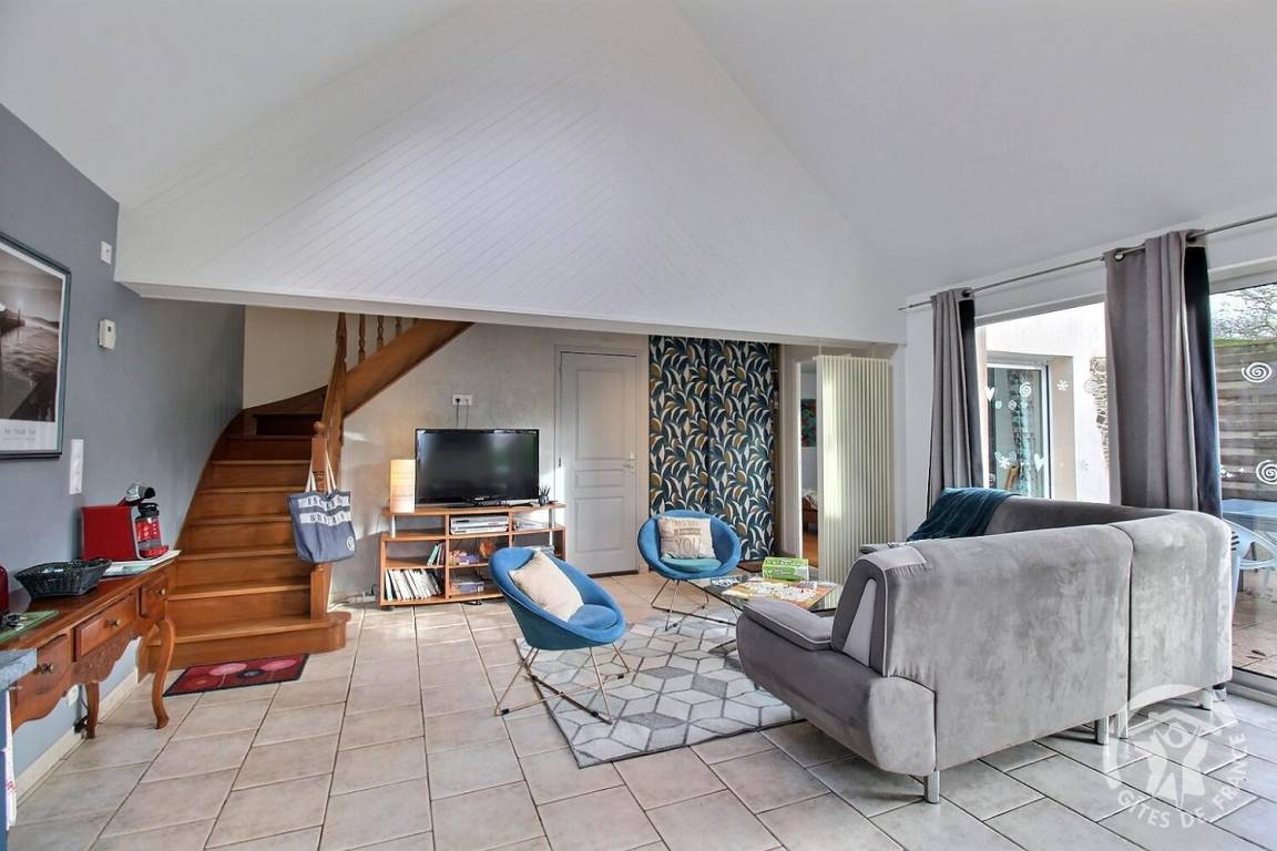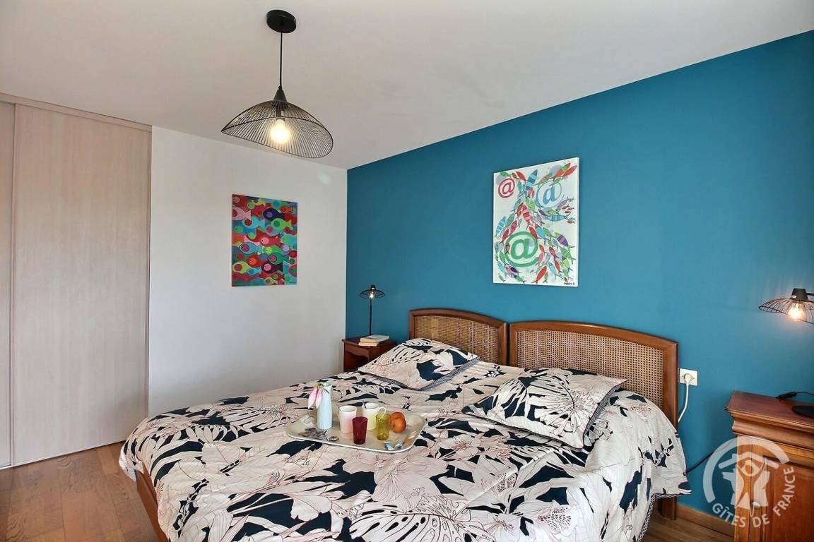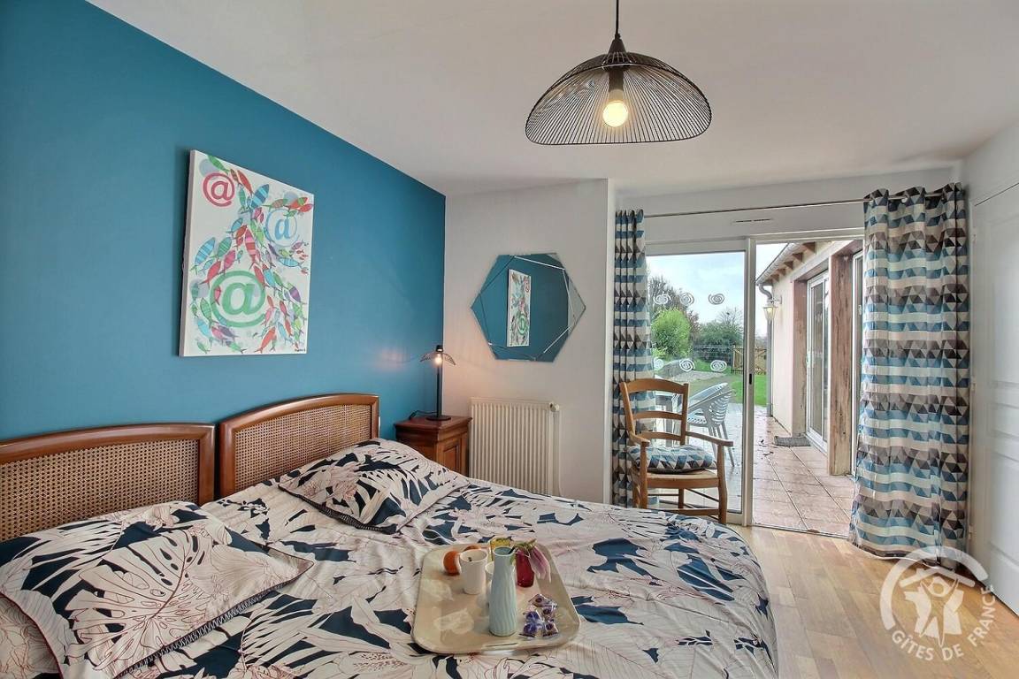 Ihre tourismus- und behindertengerechte Ferienwohnung umfasst im Erdgeschoss: Wohnzimmer mit Einbauküche, WC, Waschküche. 1 geräumiges Schlafzimmer (1 Bett 160 x 200) mit eigenem Badezimmer mit Dusche und Toilette. Etage: 2 angrenzende Schlafzimmer. Das erste enthält 2 Einzelbetten 90x190, es bietet Zugang zum Badezimmer mit Badewanne, Waschbecken und Toilette sowie Zugang zum hinteren Schlafzimmer: 1 Doppelbett 140x190. Private geflieste Terrasse von 20 m² ohne Blick und privater Garten von 250 m². Separater Eingang zur Gîte über den Hinterhof oder die vordere Terrasse über eine asphaltierte Auffahrt. Spezifischer und zugänglicher Parkplatz für dieses Ferienhaus. Aber auch großer gemeinsamer Fahrzeugparkplatz für alle Unterkünfte des Standorts und geschlossen.