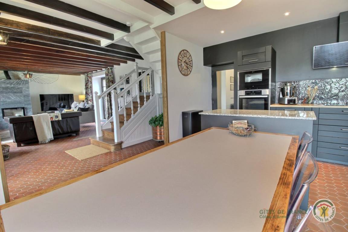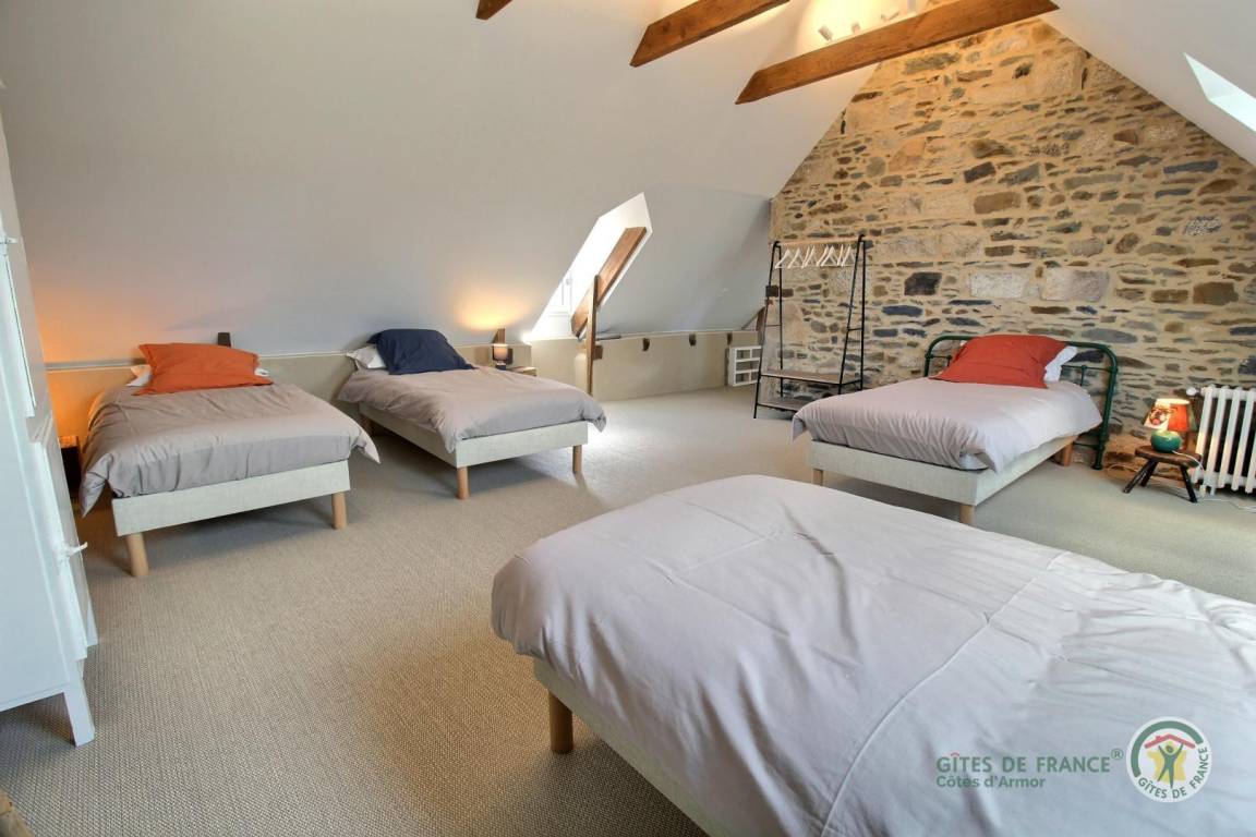 „Le gîte de La Motte est sans aucun doute le meilleur gîte que nous ayons connu en près de 20 ans de Gîte de France. L’accueil de Rose-Marie est tout simplement exceptionnel. La maison est très confortable, refaite avec soin et goût, chaque pièce à son caractère propre et respire le bien-être. Avec quatorze couchages disponibles, chacun peut dormir comme un roi, chaque chambre ayant sa salle d’eau attenante. Le jardin est vaste, entouré de champs de blé, dont nous avons assisté à la moisson. La piscine, aménagée sous un ancien hangar, est parfaite pour se rafraîchir à l’abri du vent et du soleil, et juste à côté, une table de ping-pong pour les amateurs de sport de raquette. Nous avons particulièrement apprécié la localisation de la maison, à proximité de la plage du Moulin à Saint-Quay-Portrieux. Le petit village de Plourhan, en cours de réaménagement, a beaucoup de charme, avec son église à deux pas visible de l'une des chambres et du jardin, une boucherie et une boulangerie remarquables accessibles à pied. Vous y trouverez de quoi faire des grillades à la plancha dignes des plus grands chefs. Nous recommandons vivement les visites de l’abbaye de Beauport près de Paimpol, une randonnée sur le GR34 vers Saint-Quay-Portrieux, et une découverte des alentours en vélos, gentiment prêtés par les propriétaires. Vos journées passeront à une vitesse folle entre lecture, pétanque, ping-pong, piscine, promenades, visites, plage du Moulin... et jacouzzi en famille pour vous remettre de tout cela !En résumé, une semaine en famille qui aurait pu être entre amis tellement la maison est vaste et bien équipée. Merci à Rose-Marie et son mari pour leurs bons soins et leur hospitalité hors pair !“