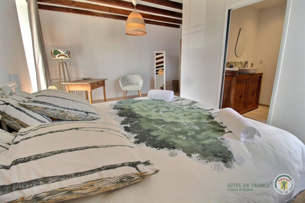 „Un séjour inoubliable dans une maison au-delà de nos attentes en termes de confort, propreté et charme, au coeur d'un petit bourg sympathique, à proximité des plages. Un accueil de qualité de la part de Mme Auffret et son mari. Je recommande vivement cette maison de caractère, idéale pour les familles avec des enfants, notamment des adolescents pour l'étage du haut qu'ils adorent. Tout y est absolument parfait.“