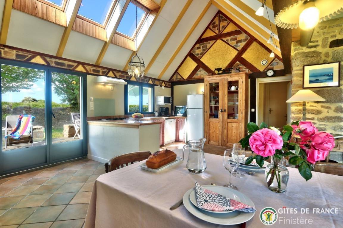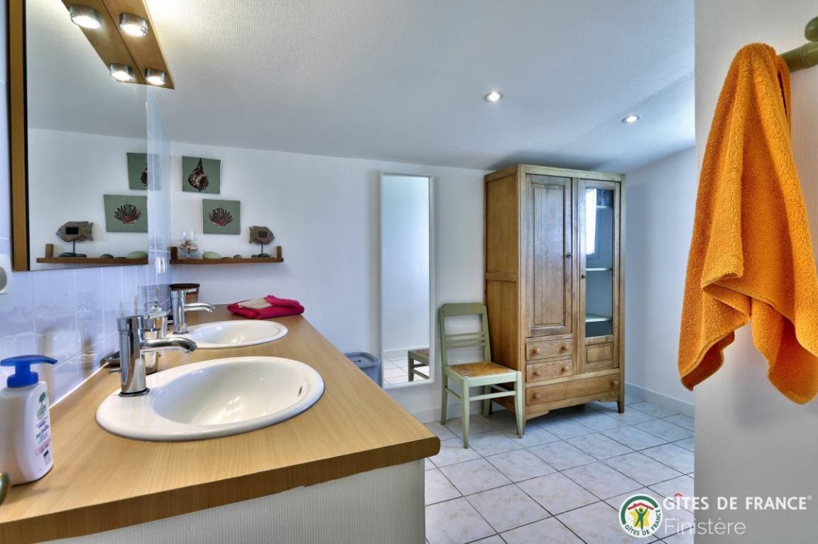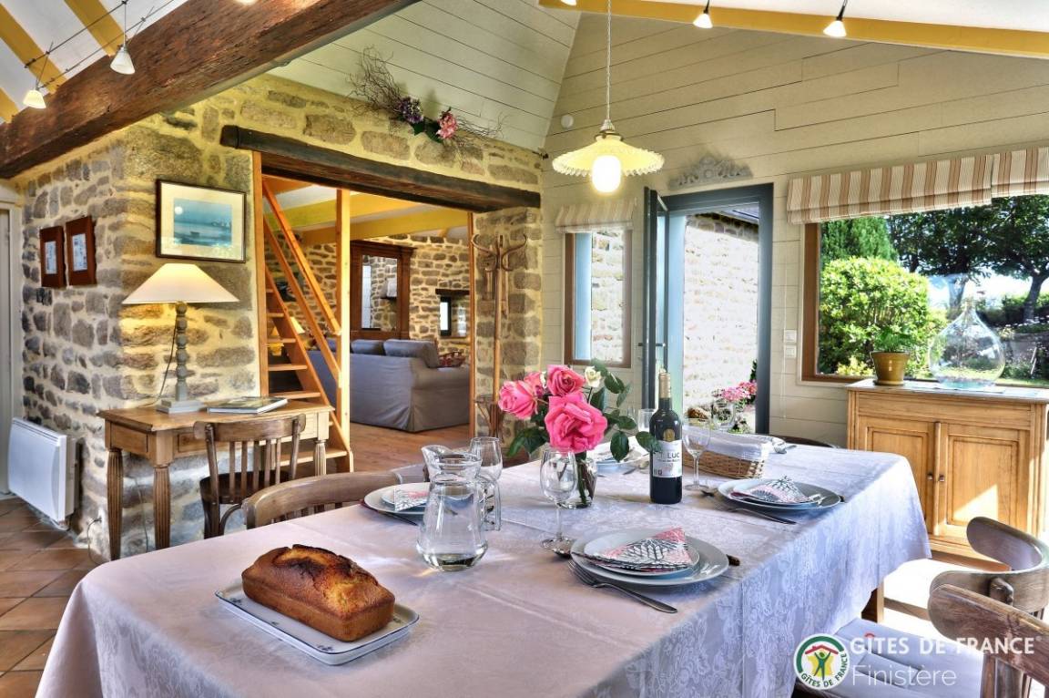 „Nous avons passé un très agréable séjour. Le gîte est très agréable, au calme, avec de beaux espaces. À noter que l’escalier pour accéder à une des chambres est très raide. La situation du gîte nous a permis de bien visiter cette magnifique côte du Finistère nord.“