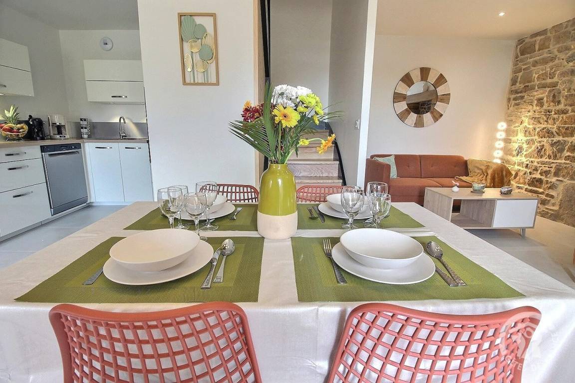 „Nous avons passé un excellent séjour chez Morgane. Le gîte est tout neuf et la rénovation d'excellente qualité. L'équipement est très complet notamment pour les séjours avec un bébé (vrai lit bébé avec linge, matelas à langer, sets de repas silicone). Une petite malette avec les activités de la région et horaires des marées est à disposition. Tout était parfait nous étions vraiment tristes de partir !“