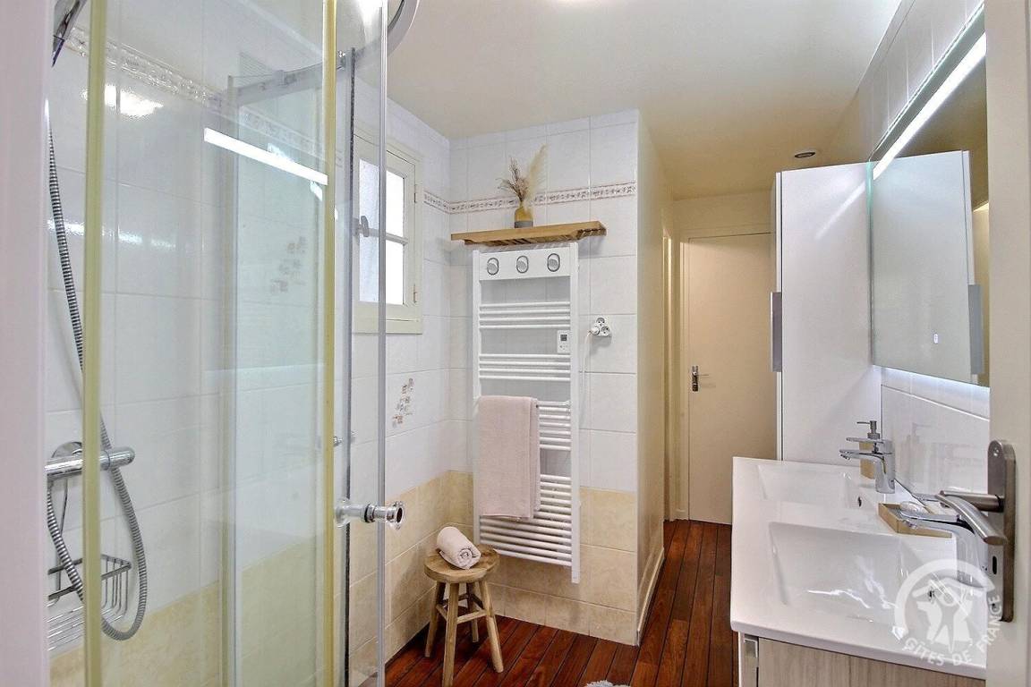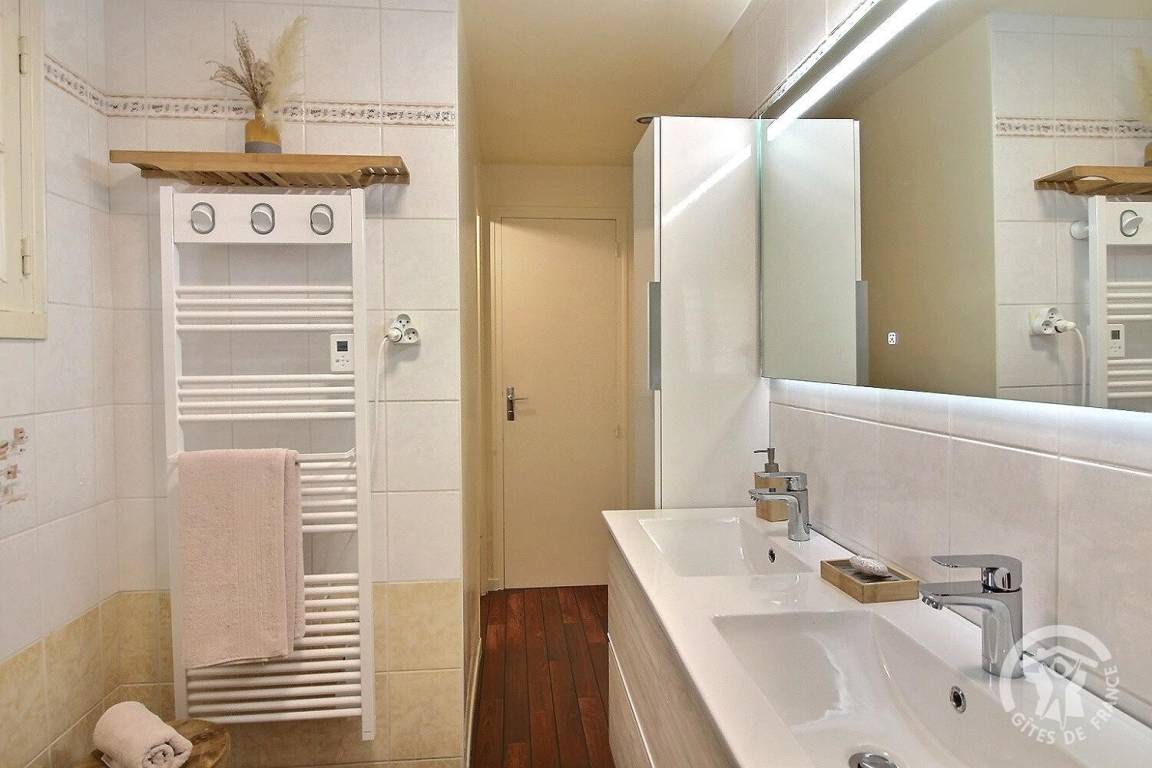 - ein Badezimmer (Dusche und Doppelwaschbecken),