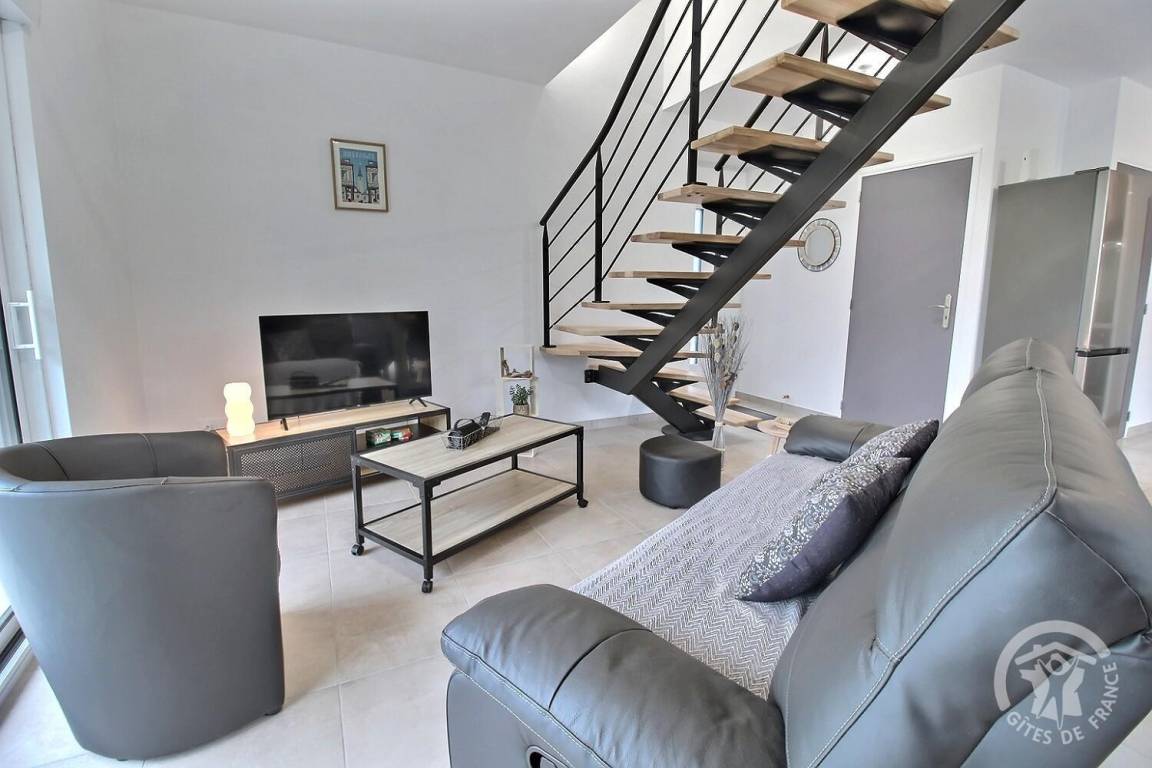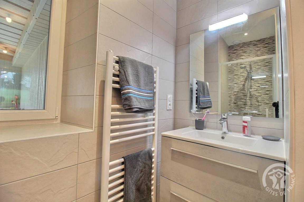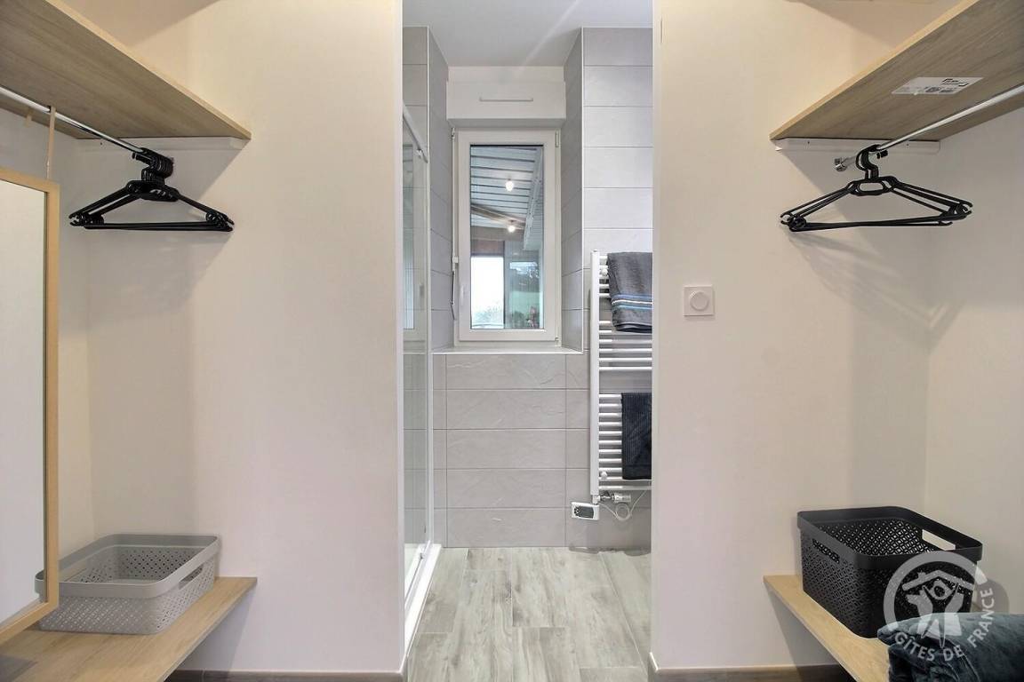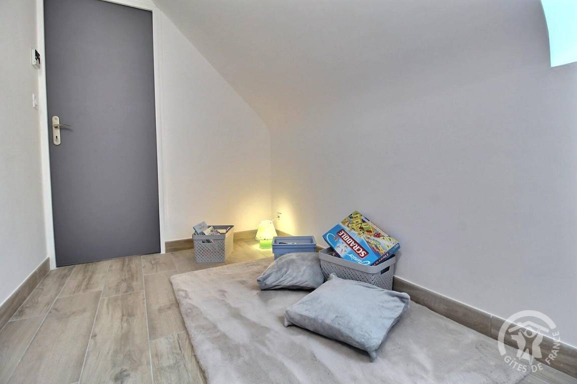 - Im Erdgeschoss: Küche, Wohnzimmer, Aufenthaltsraum, ein Schlafzimmer (1 Bett 140x190) mit Zugang zu einem privaten Badezimmer (mit Dusche), eine Waschküche, eine Toilette.