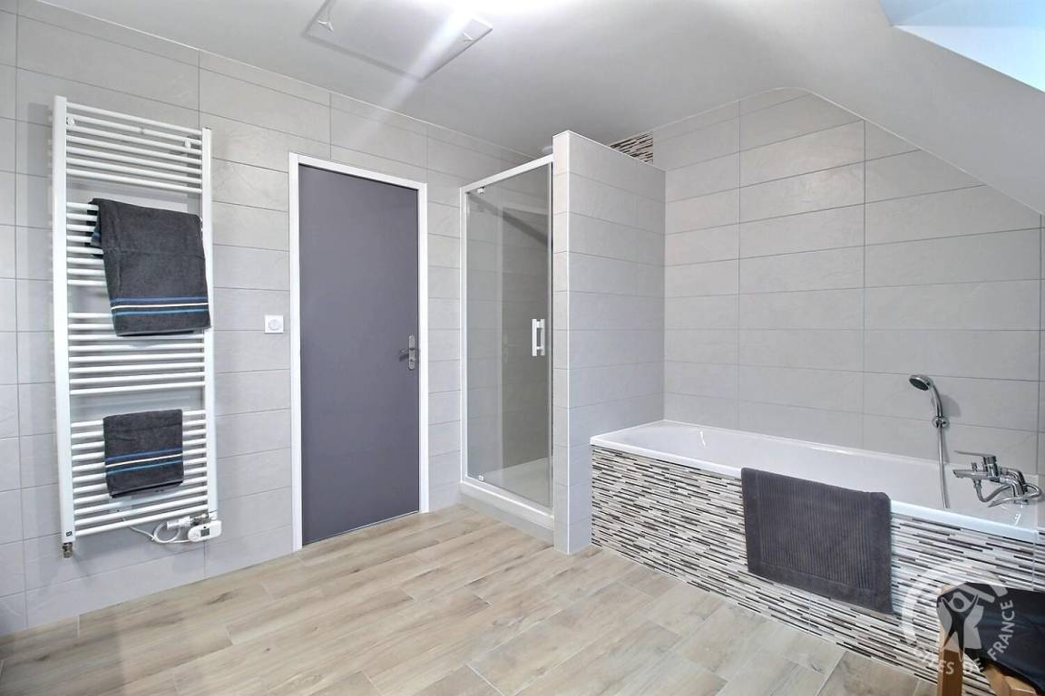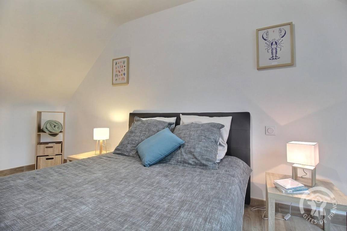 - Obergeschoss: zwei Schlafzimmer (2 Betten 140x190), ein Badezimmer mit Dusche, Badewanne und Toilette.