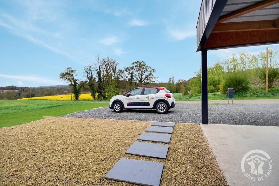 - Parken Ihrer Fahrzeuge unter dem 35 m² großen Carport oder im 35 m² großen privaten Innenhof.