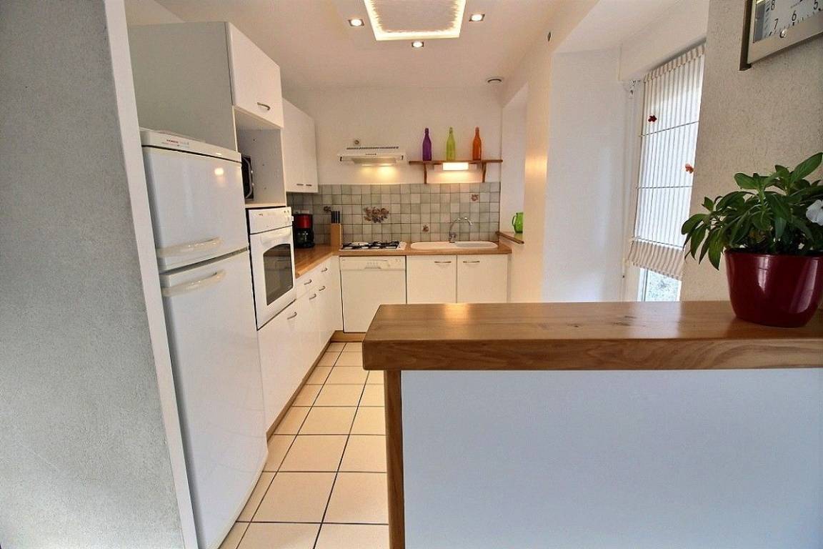 Wohnzimmer mit Zugang zu einer schönen Terrasse, Einbauküche, Hauswirtschaftsraum und separates WC.