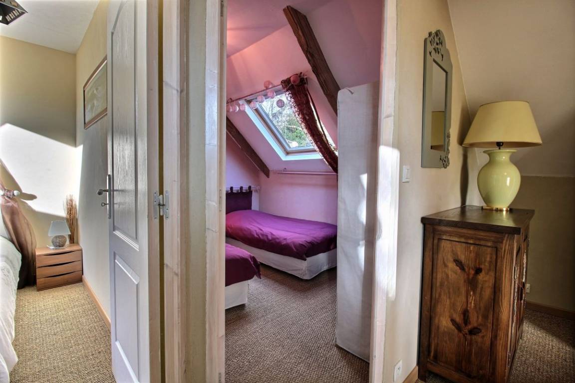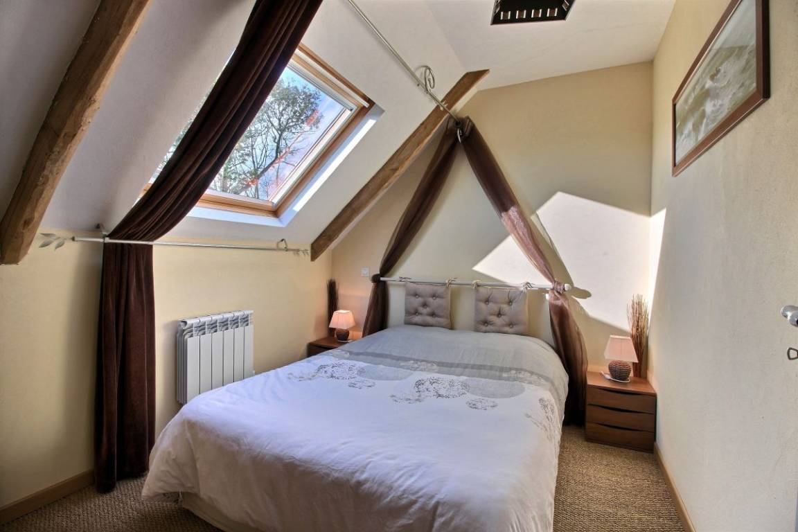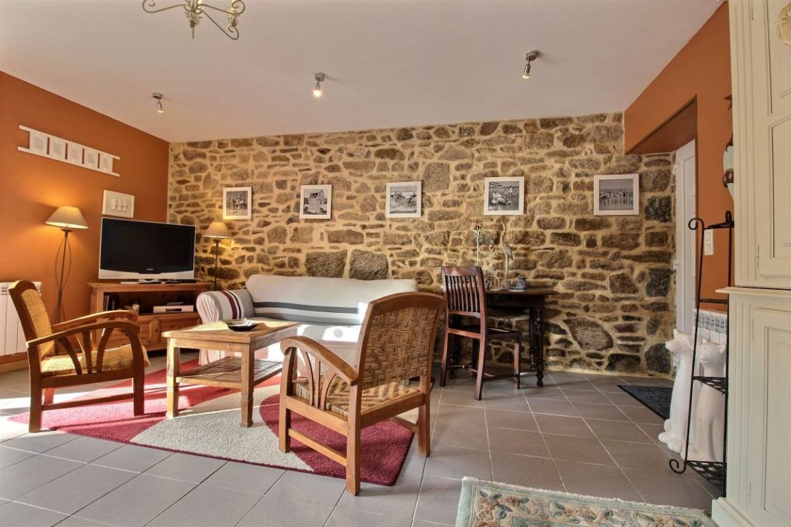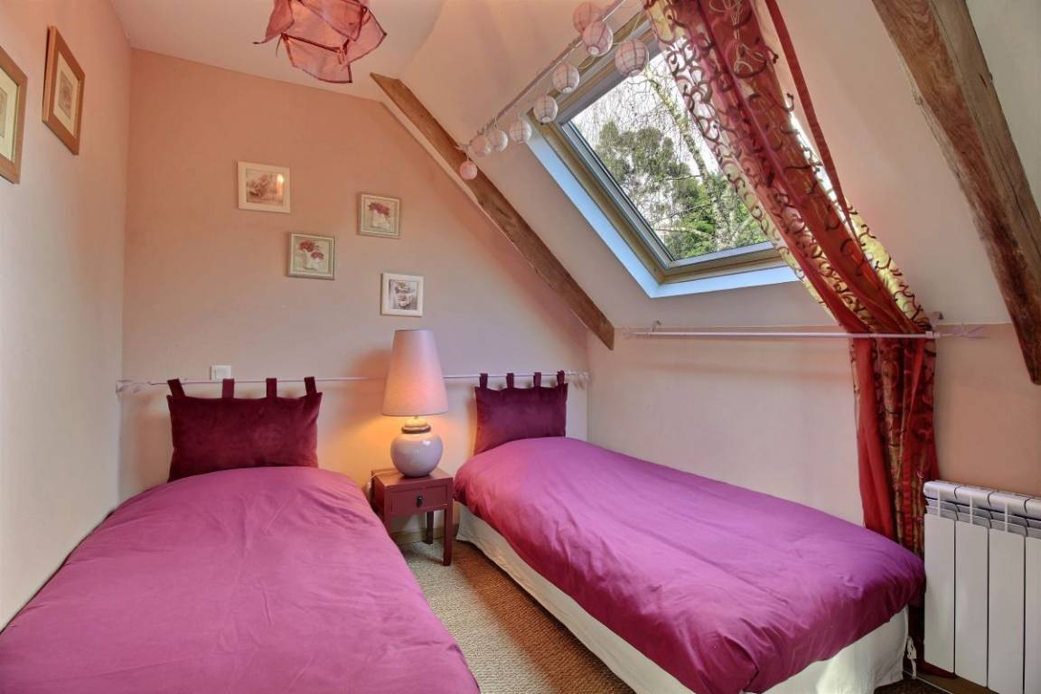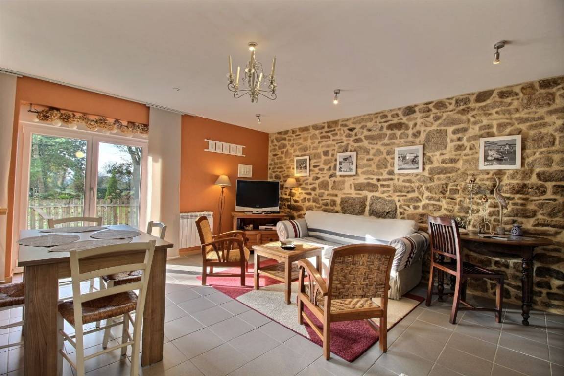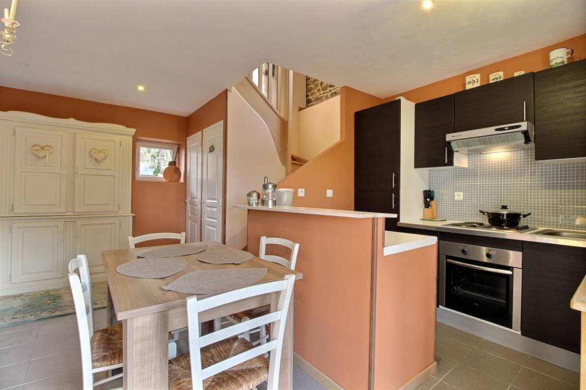 Ihre Ferienwohnung umfasst im Erdgeschoss: Wohnzimmer mit Einbauküche, separates WC und Hauswirtschaftsraum. Obergeschoss: Treppenabsatz, der zu 2 Schlafzimmern im Dachgeschoss führt (1 Bett 140x190) (2 Betten 90x190), Badezimmer (Dusche und WC). Private Terrasse, Swimmingpool (10 mx4 mx 0,80 bis 1,80 tiefe Pool verfügbar von Mitte März bis Ende Oktober) und Jacuzzi zur gemeinsamen Nutzung mit der Gîte Korrigans und den Eigentümern. Großes Waldgrundstück, wo Sie die Pferde der Besitzer bewundern können. WiFi-Zugang über Satellitenschüssel verhindert das Herunterladen.