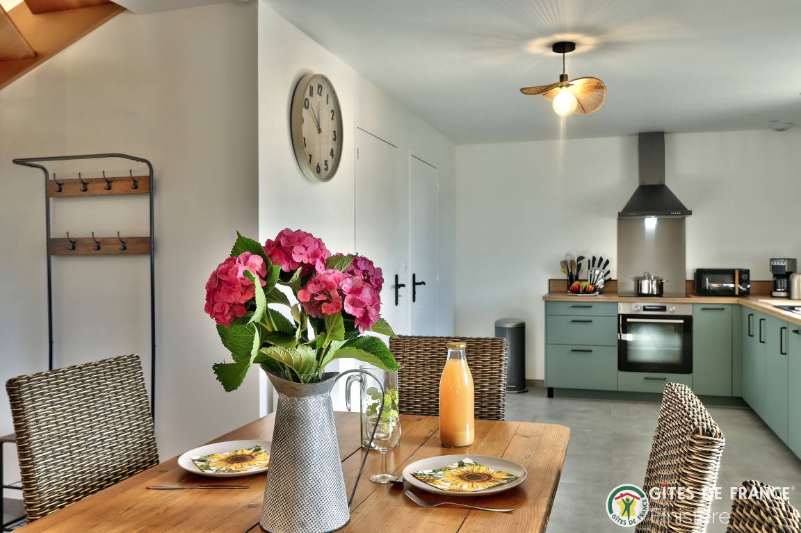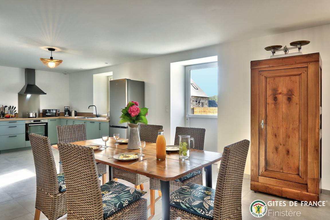 „Du 26 juillet au 2 août, nous avons eu le plaisir de séjourner chez Annie, dont nous avons particulièrement apprécié l’accueil chaleureux et les attentions délicates, notamment quelques produits bretons à notre arrivée. Annie et son mari Jean-Luc sont des hôtes très accueillants et sympathiques. Ce dernier se fera un plaisir de vous transmettre sa passion en vous expliquant la galoche bigoudène, un jeu traditionnel de palets emblématique du Pays Bigouden (Finistère). Le gîte, récent et parfaitement équipé, offre tout le confort moderne attendu. Il est spacieux, lumineux et bénéficie d’un environnement calme au sein de l’exploitation agricole. Sa situation géographique est idéale pour découvrir le Pays Bigouden, à seulement 3 kilomètres des magnifiques plages de la baie d’Audierne. Nous le recommandons vivement, certain que vous y passerez un séjour des plus agréables.“