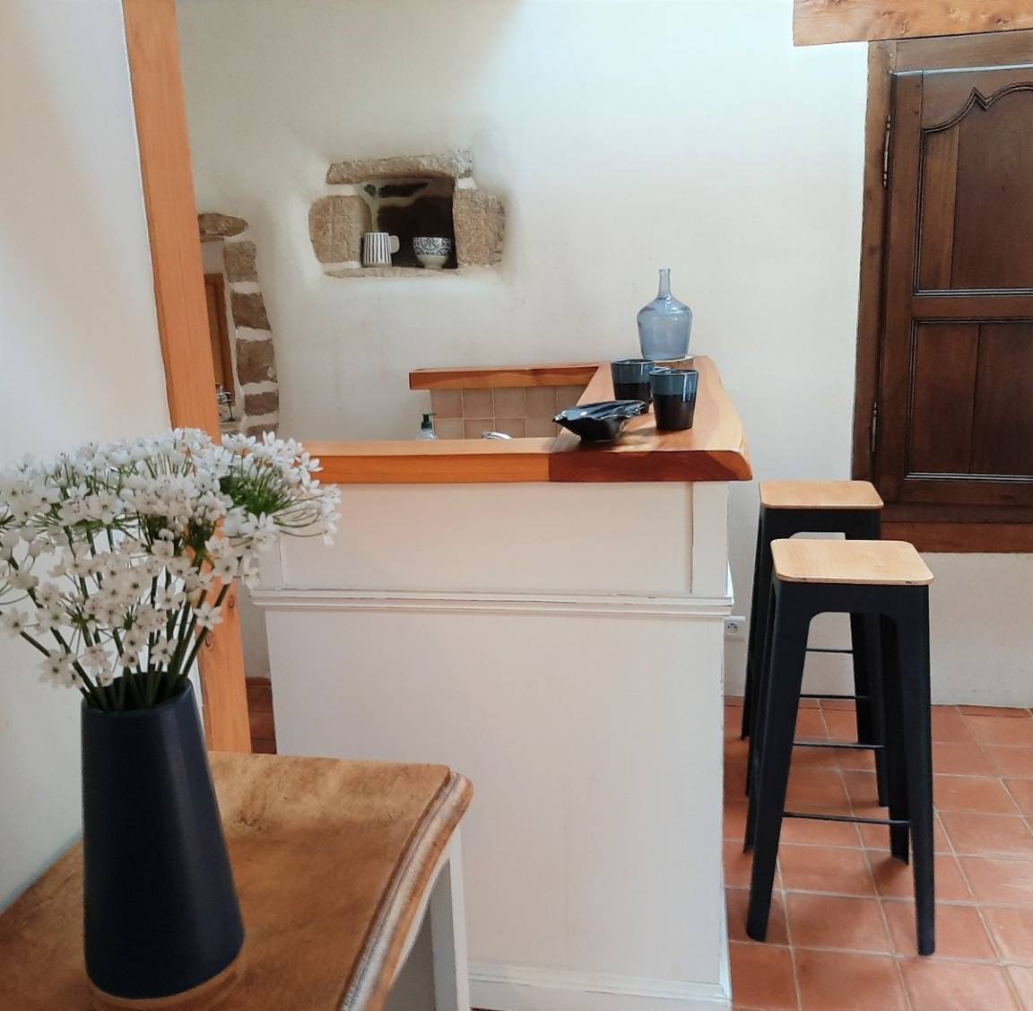 Es handelt sich um ein kleines Anwesen, das aus dem Wohnhaus der Eigentümer und einem weiteren Gîte besteht / All inklusive Unterkunft. EG: Küche mit Zugang zum Wohn-/Esszimmer mit Holzofen, Waschküche, sep. WC. 1.Stock: Doppelzimmer (Bettbreite 1,60m), Dusche/WC. Das Bett ist bezogen. WiFi. Garten, Terrasse, Gartenmöbel, Grill. Brennholz wird gestellt.