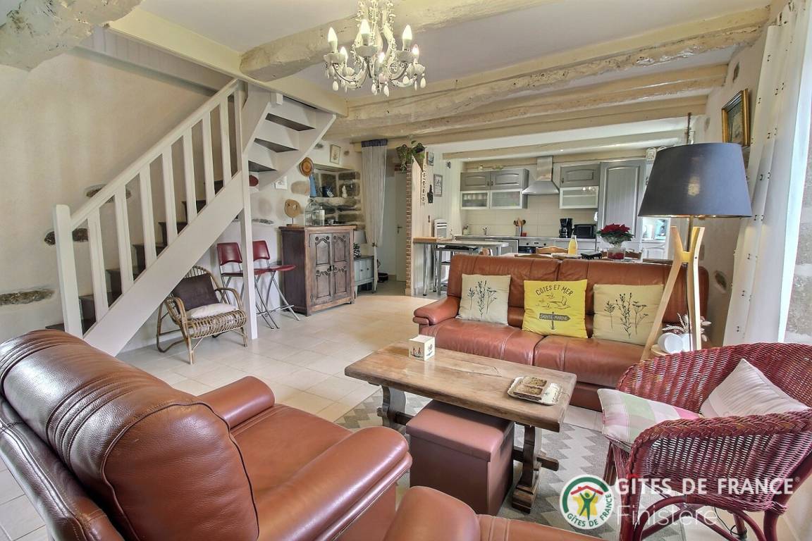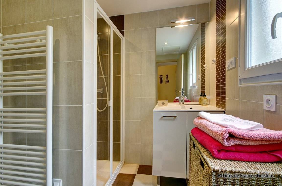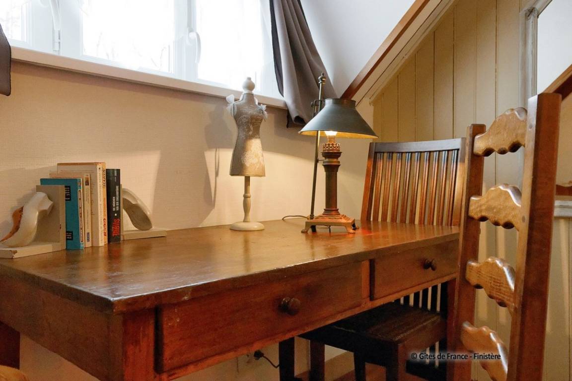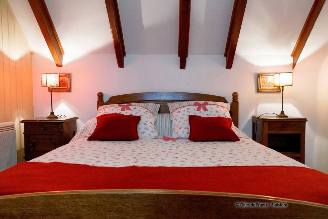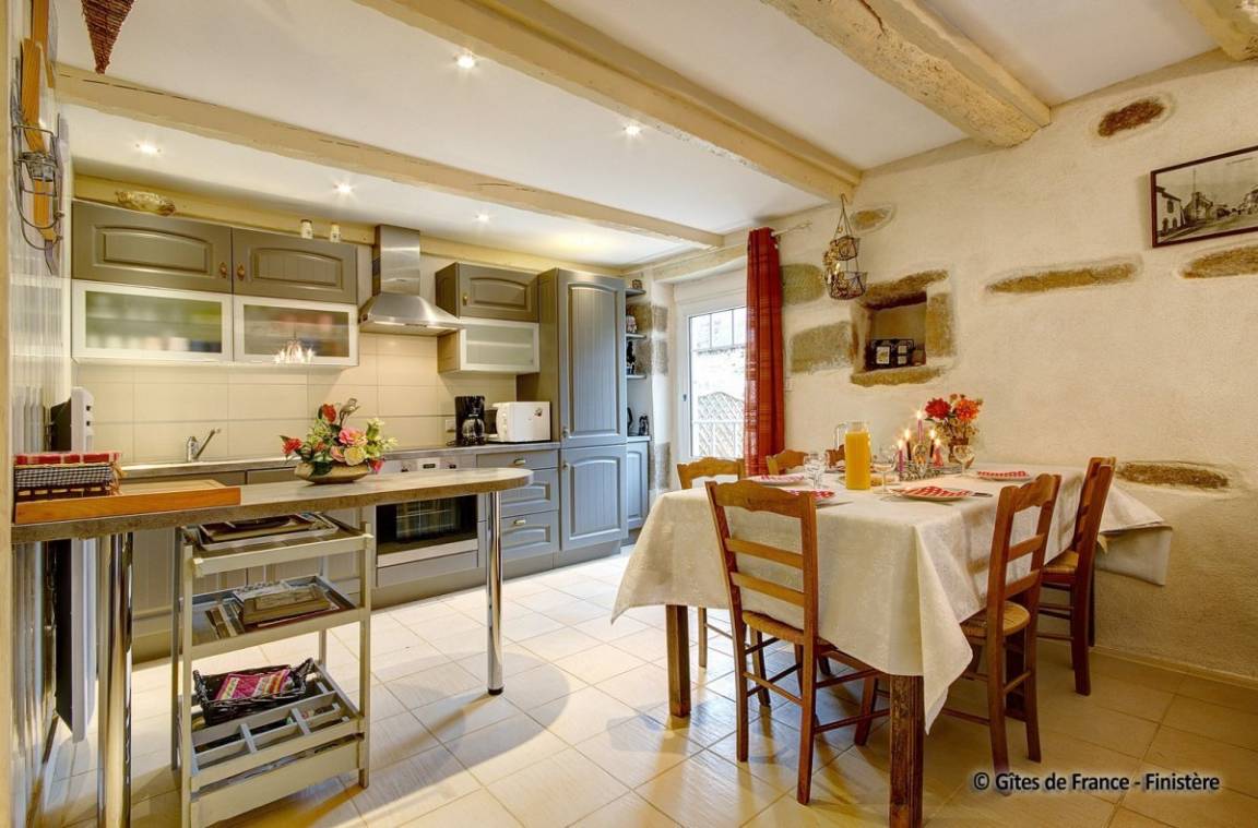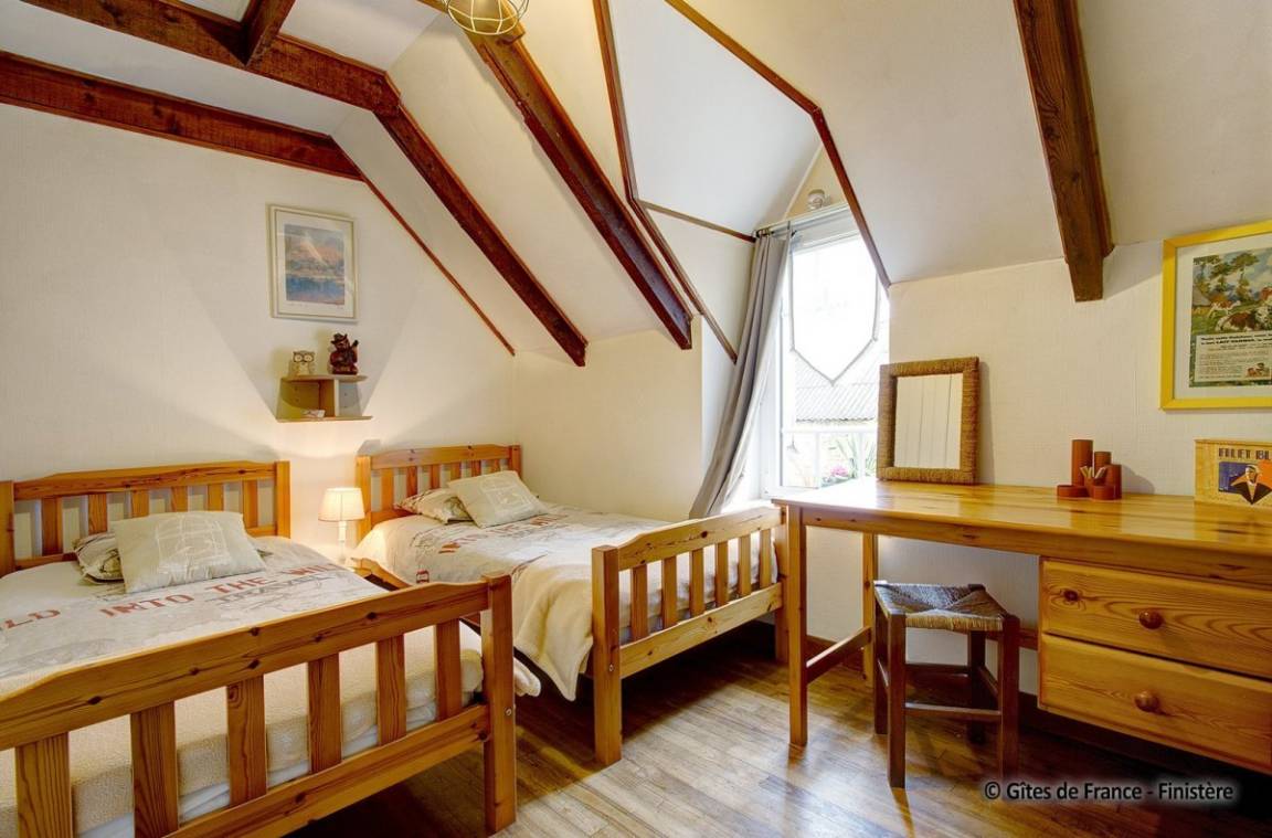 Das schöne Landhaus aus dem 18ten Jhdt wurde in 2 Gîtes umgebaut: die Strände sind 10Autominuten entfernt und die Innenstadt von Quimper nur 4km entfernt. EG: Wohn-/Esszimmer mit Kochecke (Holzofen), Dusche, sep. WC. 1.Stock: 2 Einzelzimmer, Doppelzimmer. E-Heizung. Garten, Gartenmöbel, Spielplatz.