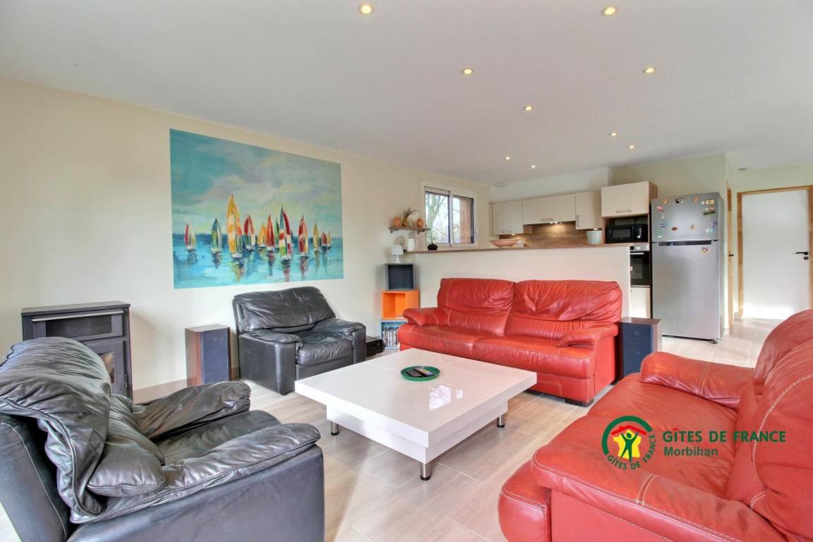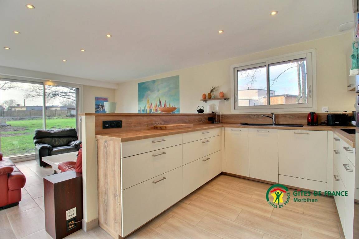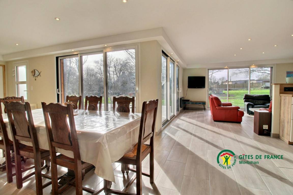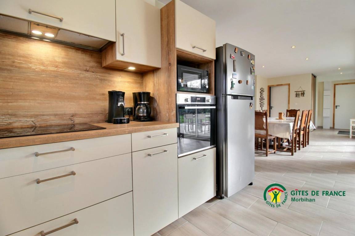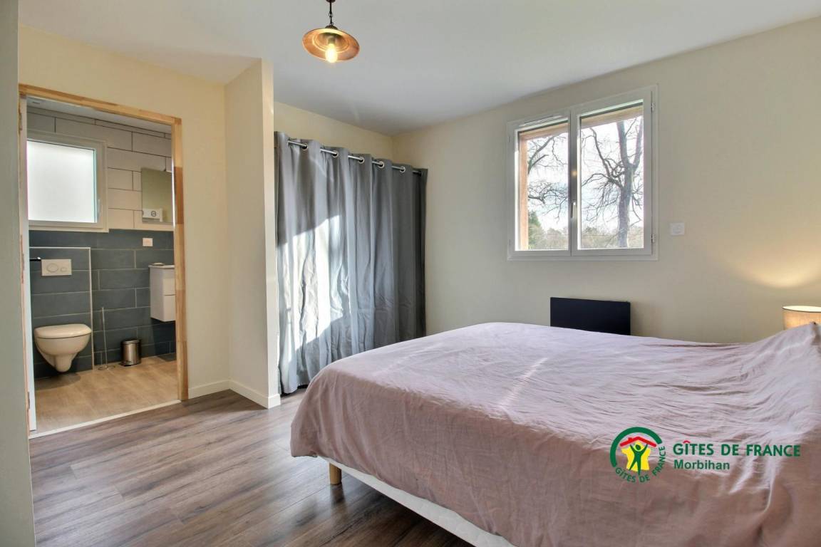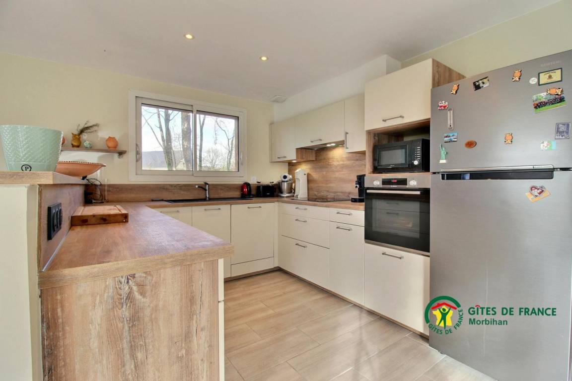 „Gite spacieux et lumineux dans un environnement boisé très calme. Logement tres bien situé pour sillonner le Morbihan sous ses diverses facettes. Dispose de tout le nécessaire et équipements... Pour le ménage c'est un peu basique. Outre l'aspirateur, il y a un petit balai une brosse a pavés et serpillière.... Excellent gîte que nous recommandons sans hésiter !“