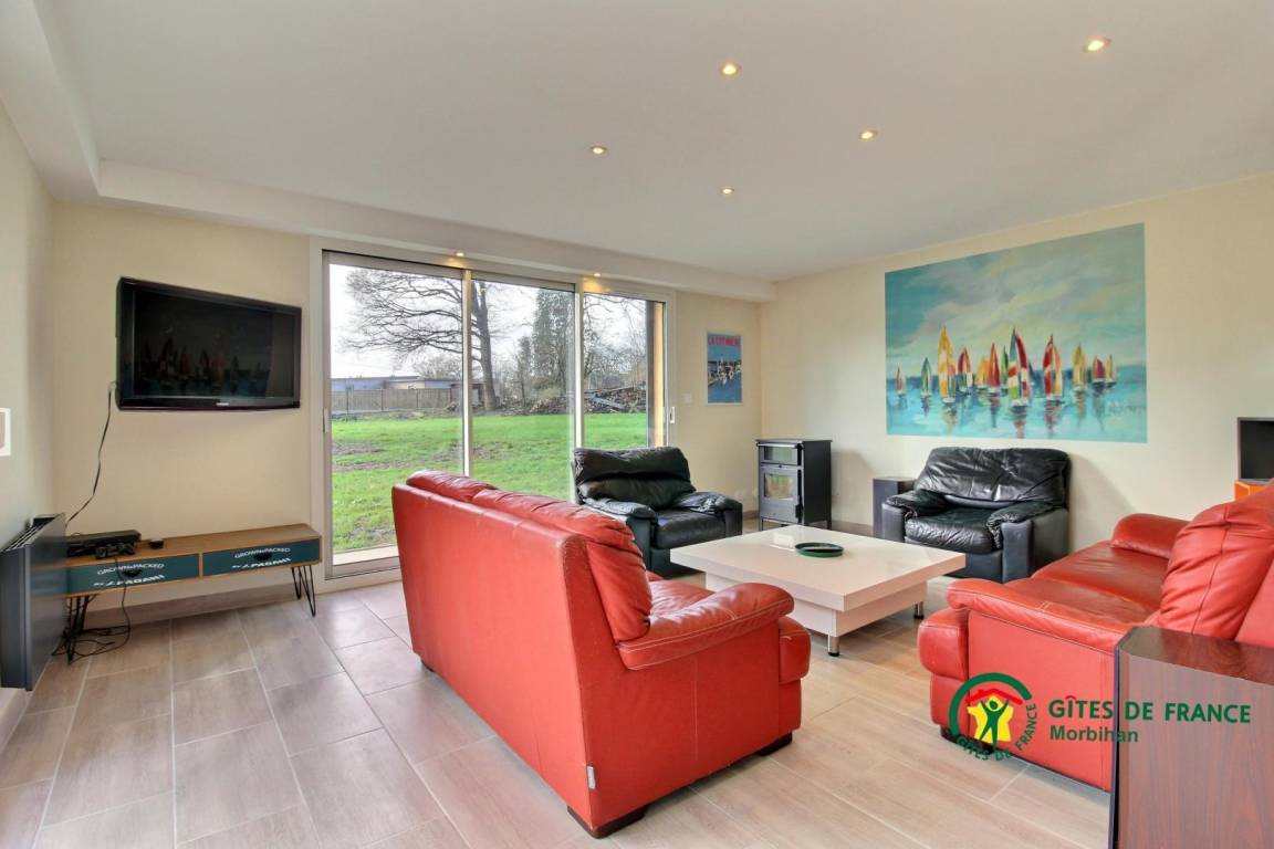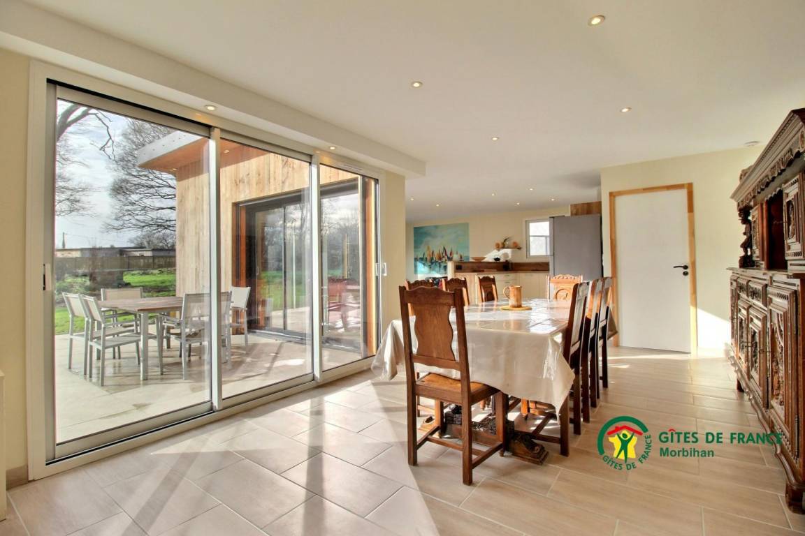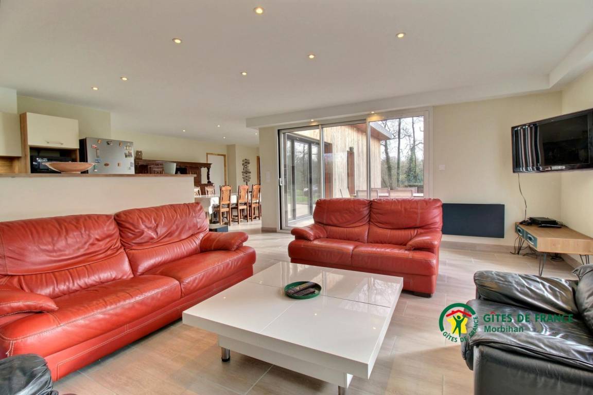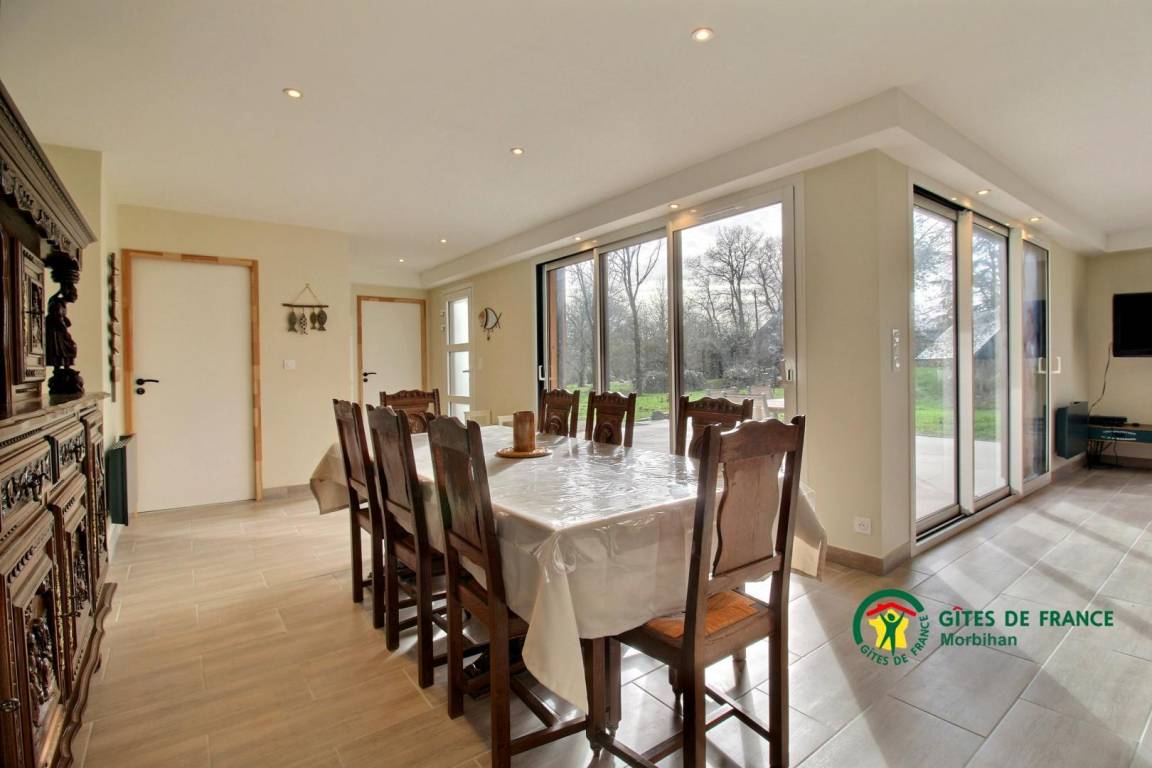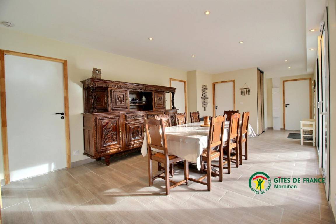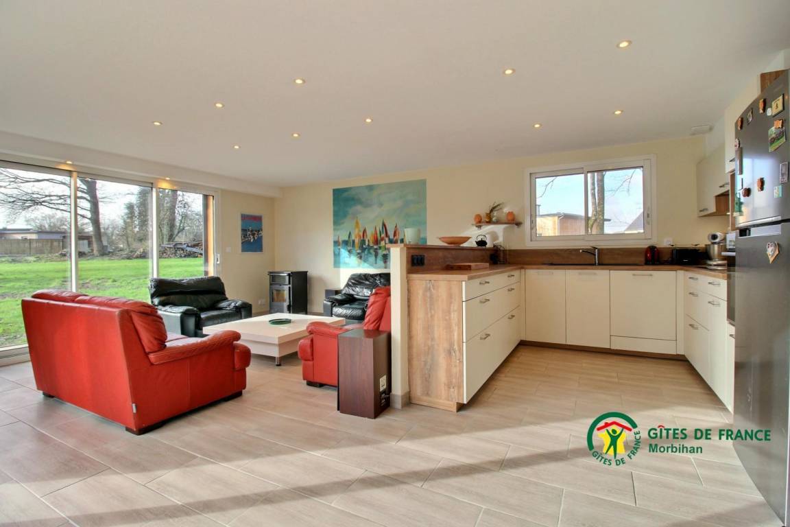 „Gite spacieux et lumineux dans un environnement boisé très calme. Logement tres bien situé pour sillonner le Morbihan sous ses diverses facettes. Dispose de tout le nécessaire et équipements... Pour le ménage c'est un peu basique. Outre l'aspirateur, il y a un petit balai une brosse a pavés et serpillière.... Excellent gîte que nous recommandons sans hésiter !“