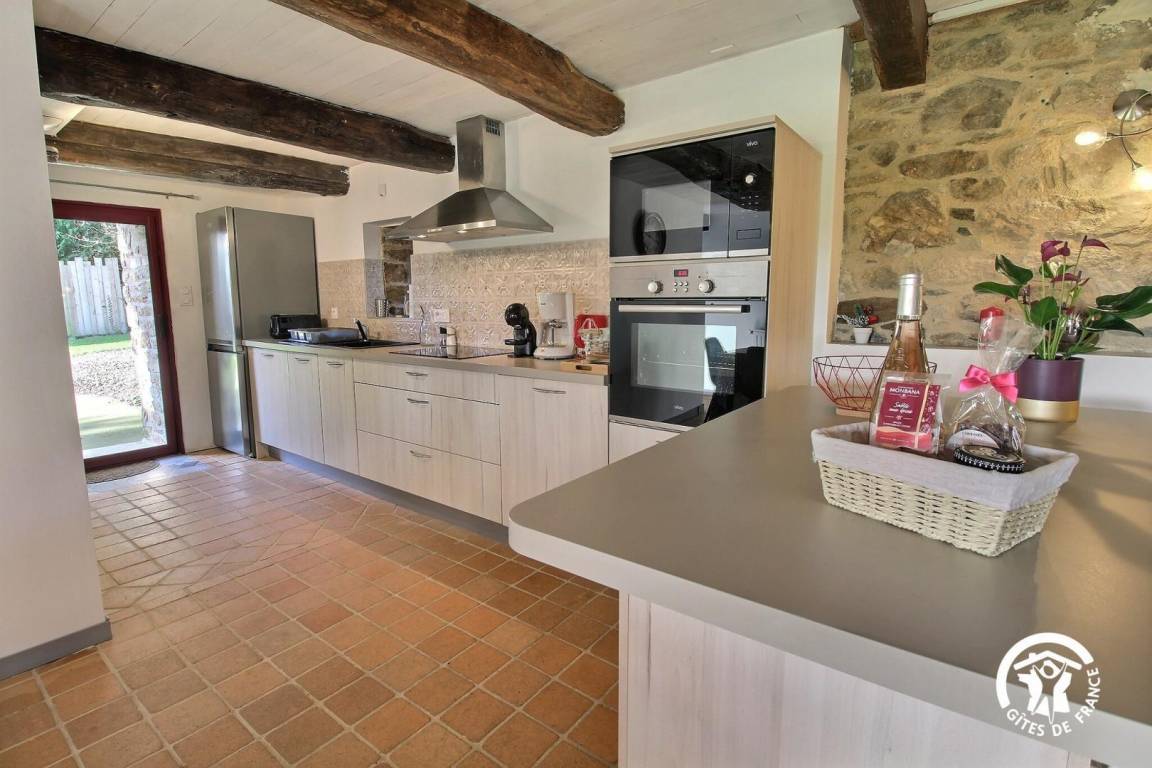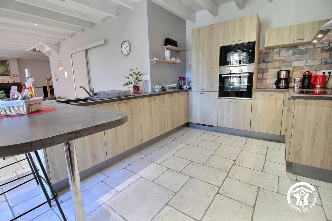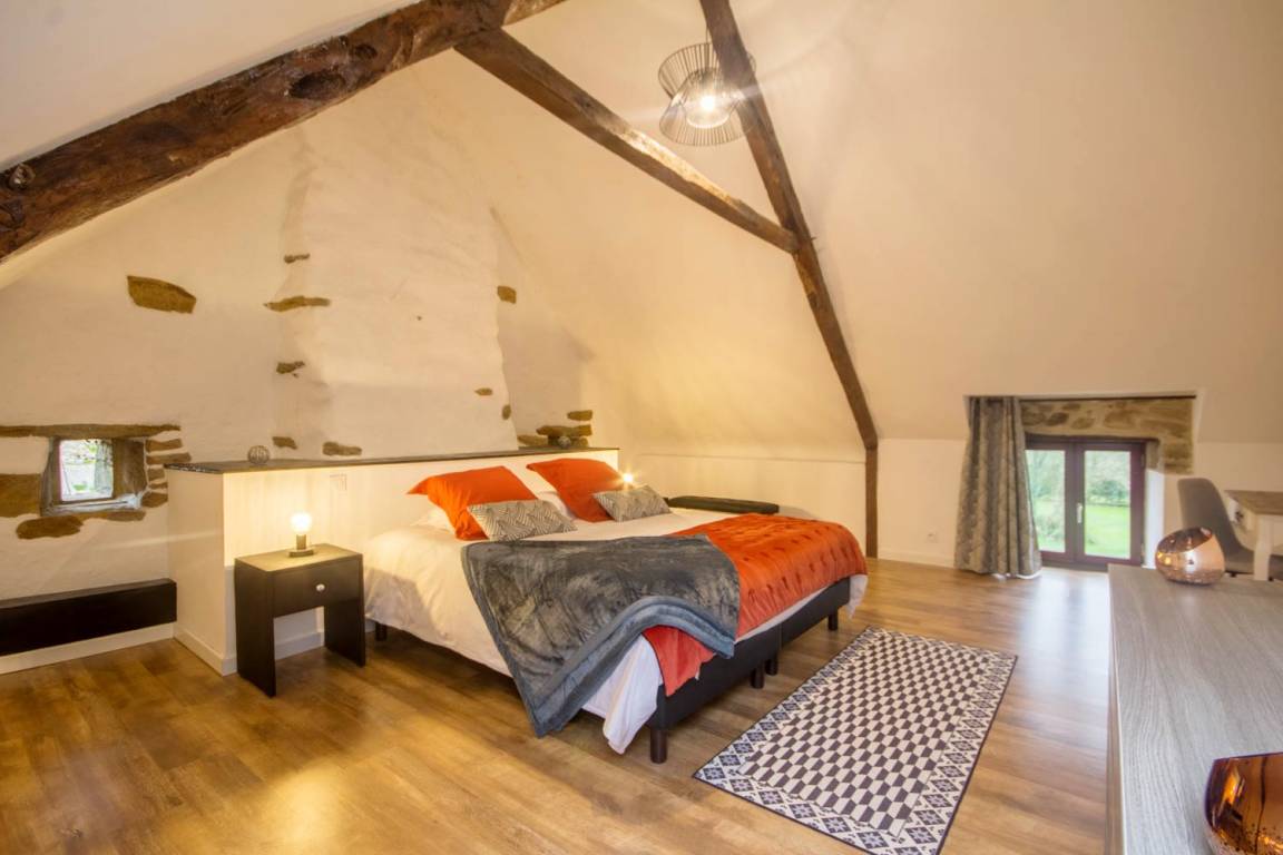 „Tout d abord accueil chaleureux avec brioche et confiture de la région. Grande amabilité de l hôte. Aménagement des deux gîtes moderne dans de l ancien très apprécié. Configuration du gîte très agréable au coeur de la nature. Indépendance ou rassemblement possibles (nous étions 4 couples) Espace intérieur comme extérieur parfait et au calme. Nous ne retiendrons qu'un merveilleux souvenir.“