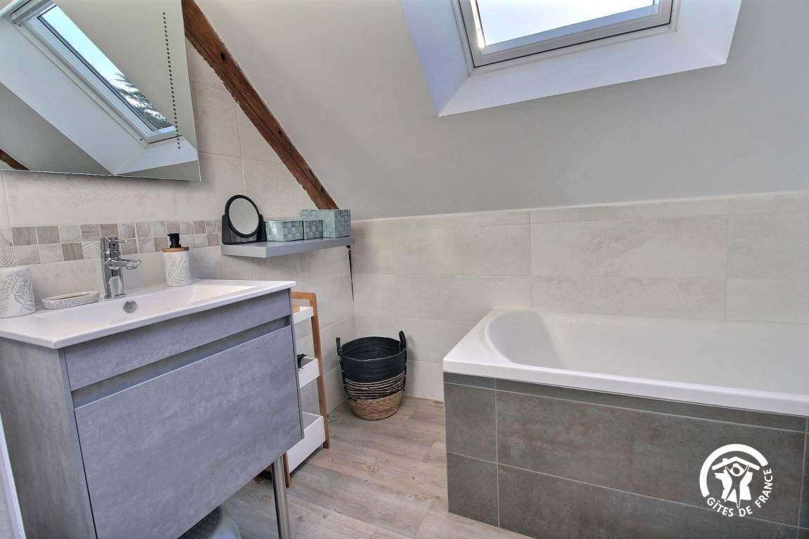 -Die 2. Gîte 56G17328 bietet Ihnen im Erdgeschoss: ein schönes Wohnzimmer mit Lounge (1 hochwertiges Schlafsofa für 2), Wohnzimmer und Einbauküche, Duschbad mit WC. Im 1. Stock: 2 Schlafzimmer (2 180 Betten teilbar in 2 x 90), Badezimmer und separate Toilette.
