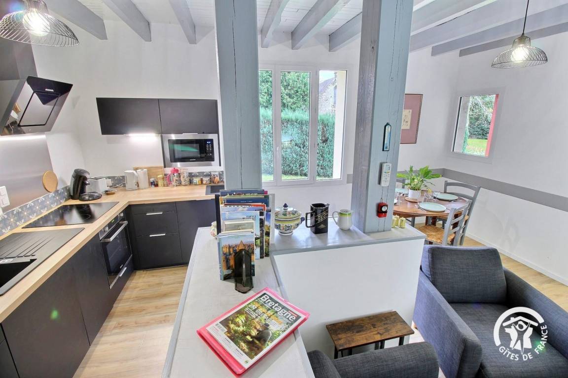 „Très joli maison au calme. Fonctionnelle et agréable. Idéale pour famille de 2 enfants et 2 adultes. Très bien placé proche voie express (5,6 km), au centre de la Bretagne. Le gîte a répondu à nos attentes pour nos vacances de printemps.“