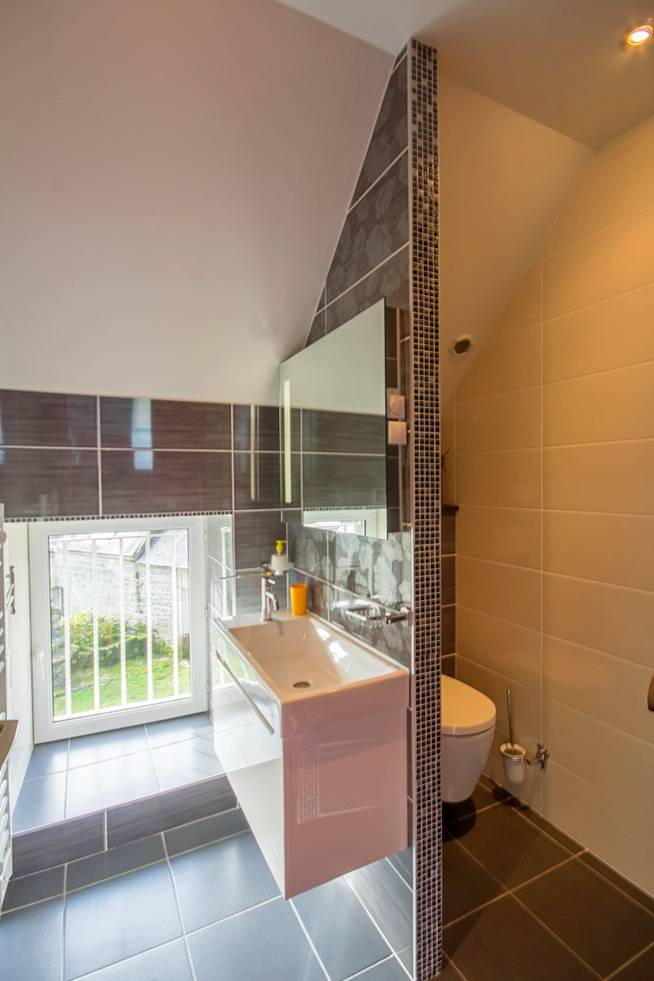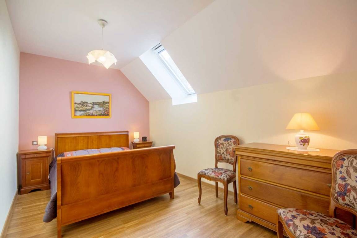 - Im Obergeschoss: ein Schlafzimmer mit einem 160 cm breiten Bett, ein Schlafzimmer mit einem 140 cm breiten Bett, ein Badezimmer mit Waschbecken und Toilette.