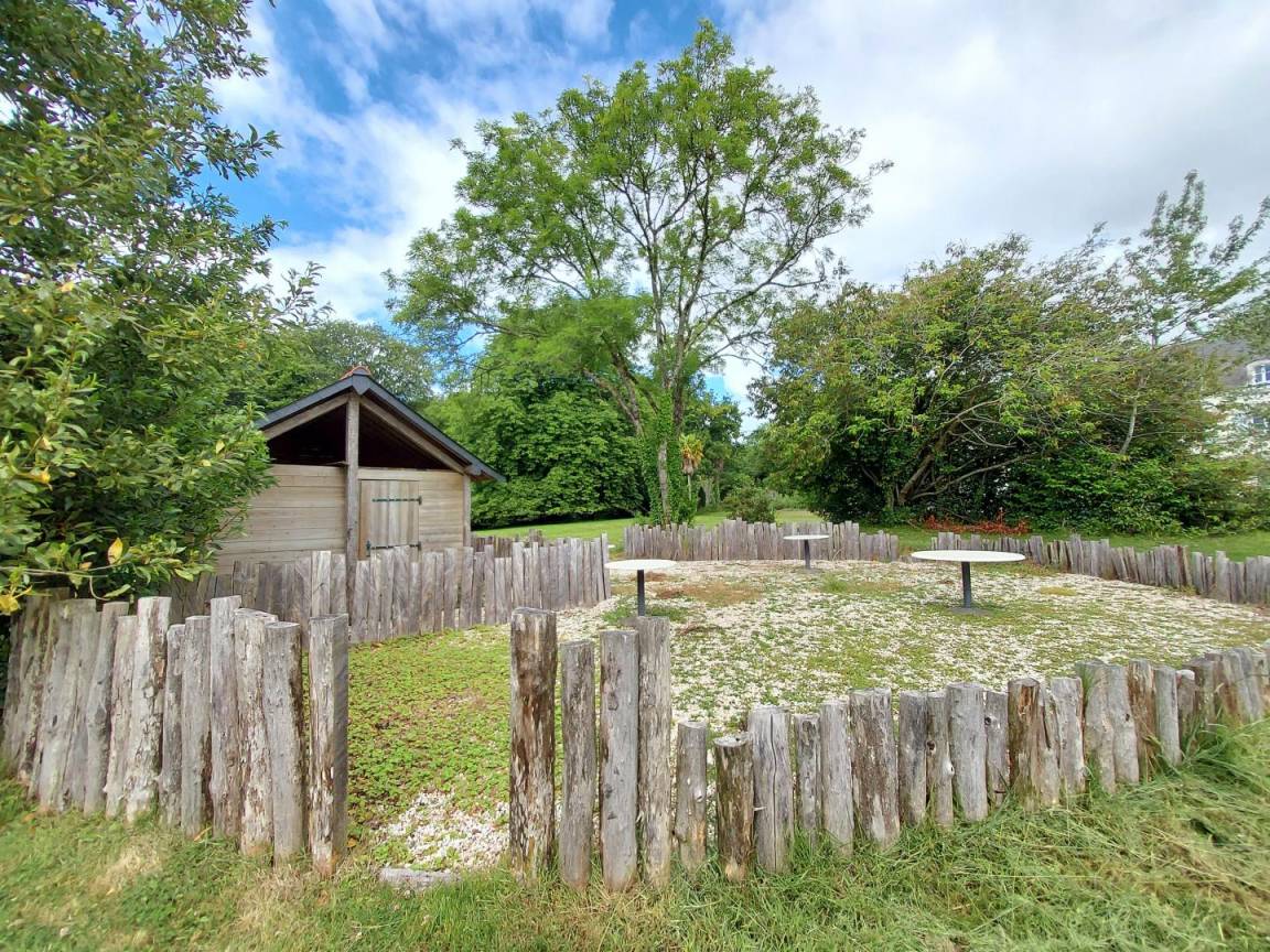 Draußen sind im Park mehrere Bereiche mit Gartenmöbeln und Grills eingerichtet, außerdem steht Ihnen ein kleiner überdachter Bereich mit Waschbecken zur Verfügung. Das Anwesen beherbergt fünf weitere Wohnungen im Schloss, ein Ferienhaus, eine Hütte und das Haus der Eigentümer. Alle Einrichtungen (Spielplatz, Schwimmbad usw.) und Parkplätze werden gemeinsam genutzt. Das Anwesen grenzt im Norden an die Bahnlinie, alle Unterkünfte, der Park und die Aktivitäten (Tennis, Schwimmbad, Spiele) liegen im Süden.